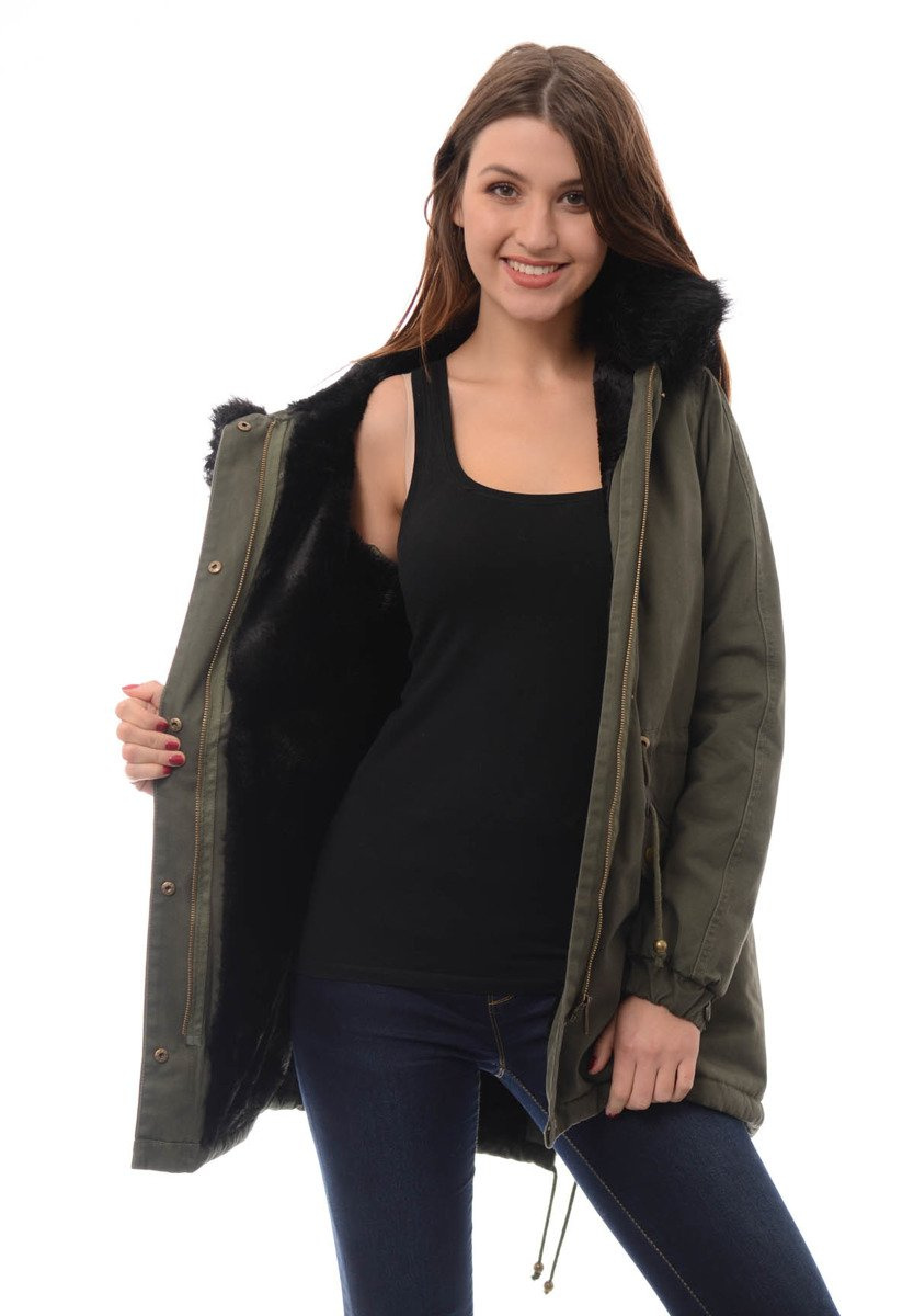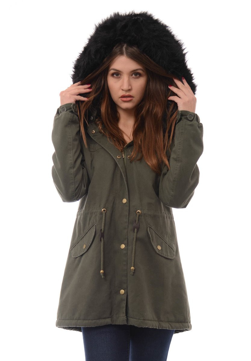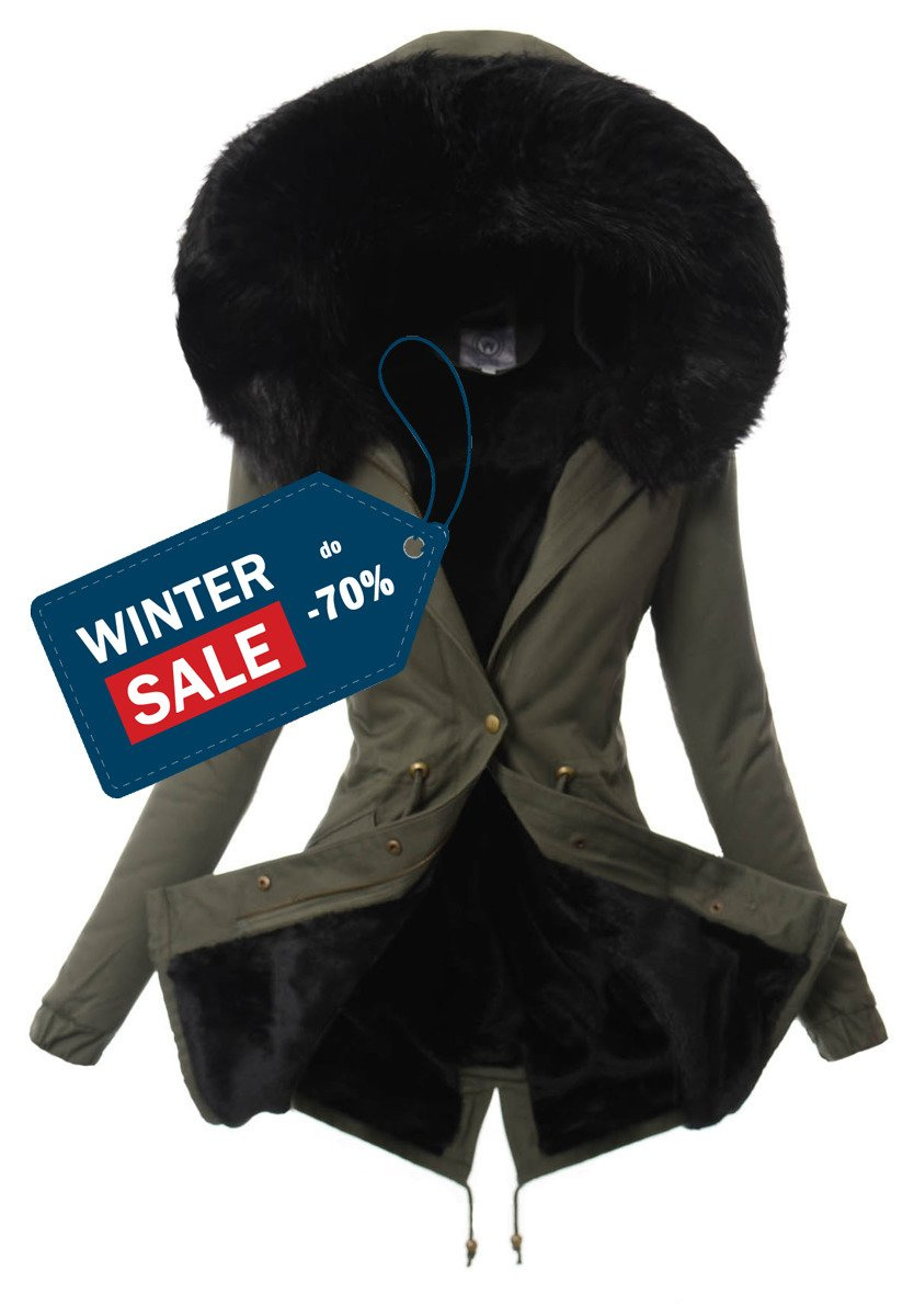 Rewelacyjna, najmodniejsza w tym sezonie zimowa kurtka parka w kolorze zielonym z pięknym futrem w kolorze czarnym. Parka zapinana jest na suwak oraz napy. Kurtka ocieplana jest przyjemnym futerkiem na całej długości oraz w kapturze, rękawy kurtki są ocieplone, wykończone podszewką. Futerko przy kapturze kurtki jest odpinane. Nieodpinany kaptur zapewni ciepło w mroźne i wietrzne dni. Ściągacz w pasie oraz na dole na troczki pozwala na dowolne dopasowanie kurtki do sylwetki. Kurtka posiada dwie duże kieszenie z przodu na dole zapinane na napy. Napy oraz suwak w kurtce są w kolorze złotym. Tył kurtki jest dłuższy o ok. 8 cm od jej przodu. Kurtka w mankietach posiada gumkę ściągającą, oraz regulację mankietów guzikami. Kurtka wykonana jest z materiałów najwyższej jakości. Materiał: 100% Bawełna.