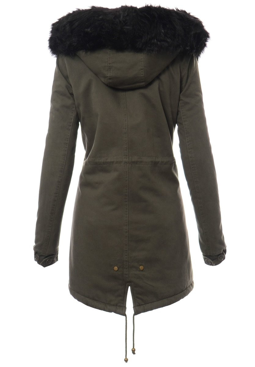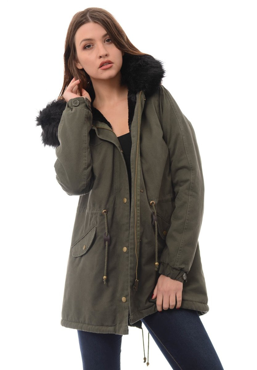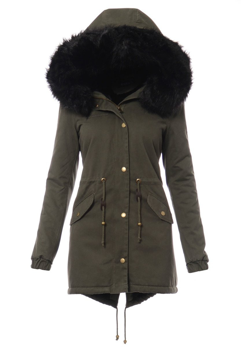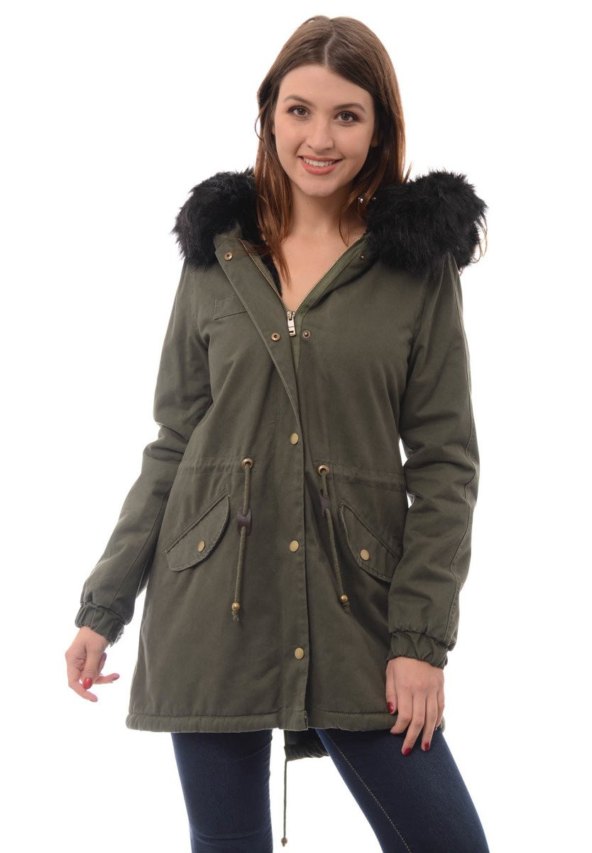 Rewelacyjna, najmodniejsza w tym sezonie zimowa kurtka parka w kolorze zielonym z pięknym futrem w kolorze czarnym. Parka zapinana jest na suwak oraz napy. Kurtka ocieplana jest przyjemnym futerkiem na całej długości oraz w kapturze, rękawy kurtki są ocieplone, wykończone podszewką. Futerko przy kapturze kurtki jest odpinane. Nieodpinany kaptur zapewni ciepło w mroźne i wietrzne dni. Ściągacz w pasie oraz na dole na troczki pozwala na dowolne dopasowanie kurtki do sylwetki. Kurtka posiada dwie duże kieszenie z przodu na dole zapinane na napy. Napy oraz suwak w kurtce są w kolorze złotym. Tył kurtki jest dłuższy o ok. 8 cm od jej przodu. Kurtka w mankietach posiada gumkę ściągającą, oraz regulację mankietów guzikami. Kurtka wykonana jest z materiałów najwyższej jakości. Materiał: 100% Bawełna.