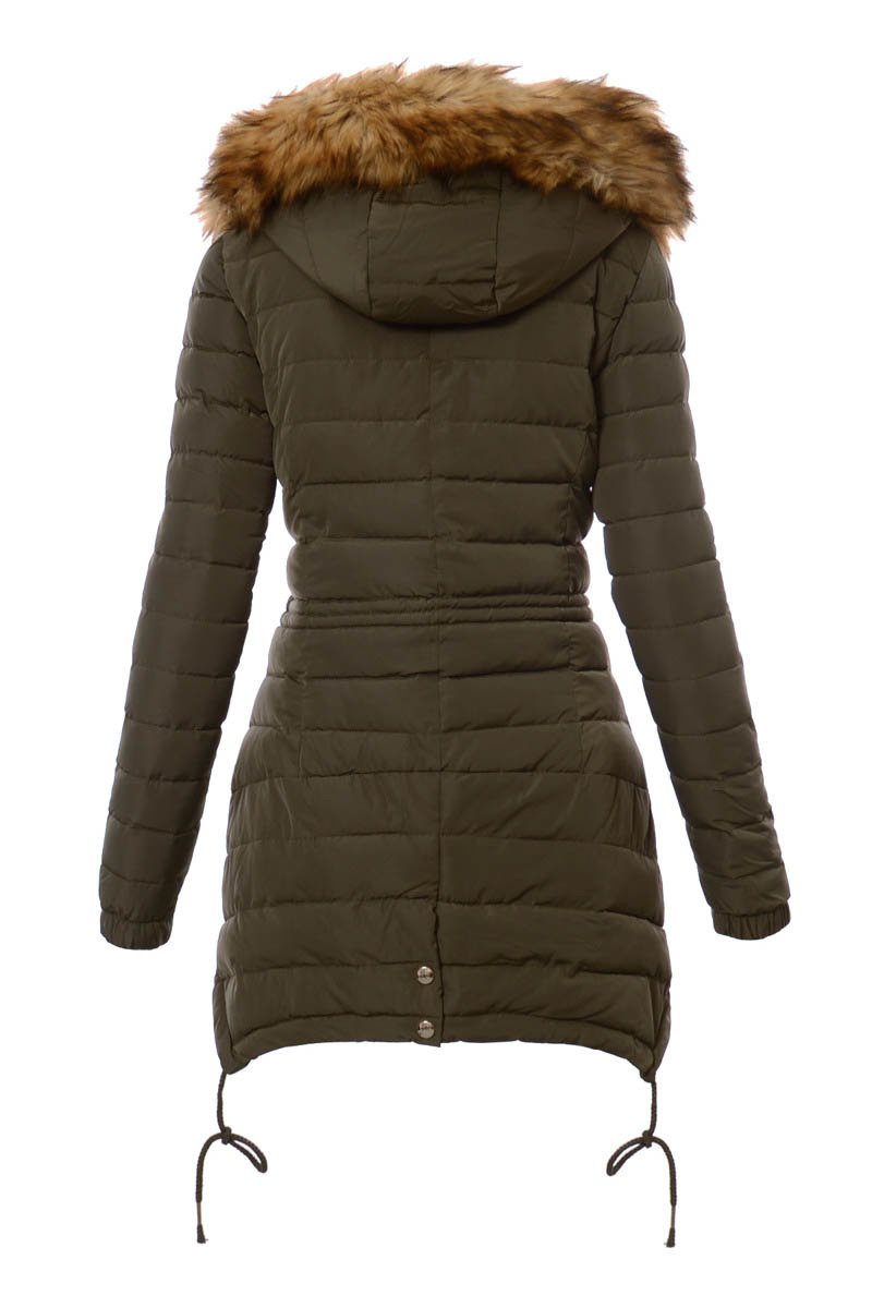 Najmodniejsza w tym sezonie kurtka damska w kolorze zielonym. Ciepłe wypełnienie kurtki zapewnia ciepło w mroźne dni. Na wysokości tułowia od środka dodatkowo ocieplana "misiem". Kurtka zapinana jest na suwak. Delikatnie taliowany i rozszerzany dołem fason kurtki idealnie dopasowuję się do każdej kobiecej sylwetki. Kurtka posiada z przodu dwie kieszenie zasuwane na suwak. Odpinany kaptur ze ściągaczem z odpinanym futerkiem zapewnia ciepło w wietrzne zimowe dni. Kurtka posiada ściągacz w pasie(od środka) oraz na dole co pozwala na lepsze dopasowanie kurtki. Mankiety w kurtce mają wszyty ściągacz i dodatkowo można je regulować napami. Asymetryczny dół kurtki oraz ozdobne napy dodają jej uroku. Tył kurtki jest dłuższy o ok. 11 cm. Suwaki oraz napy kurtki są w kolorze złotym. Kurtka wykonana jest z materiałów najwyższej jakości.