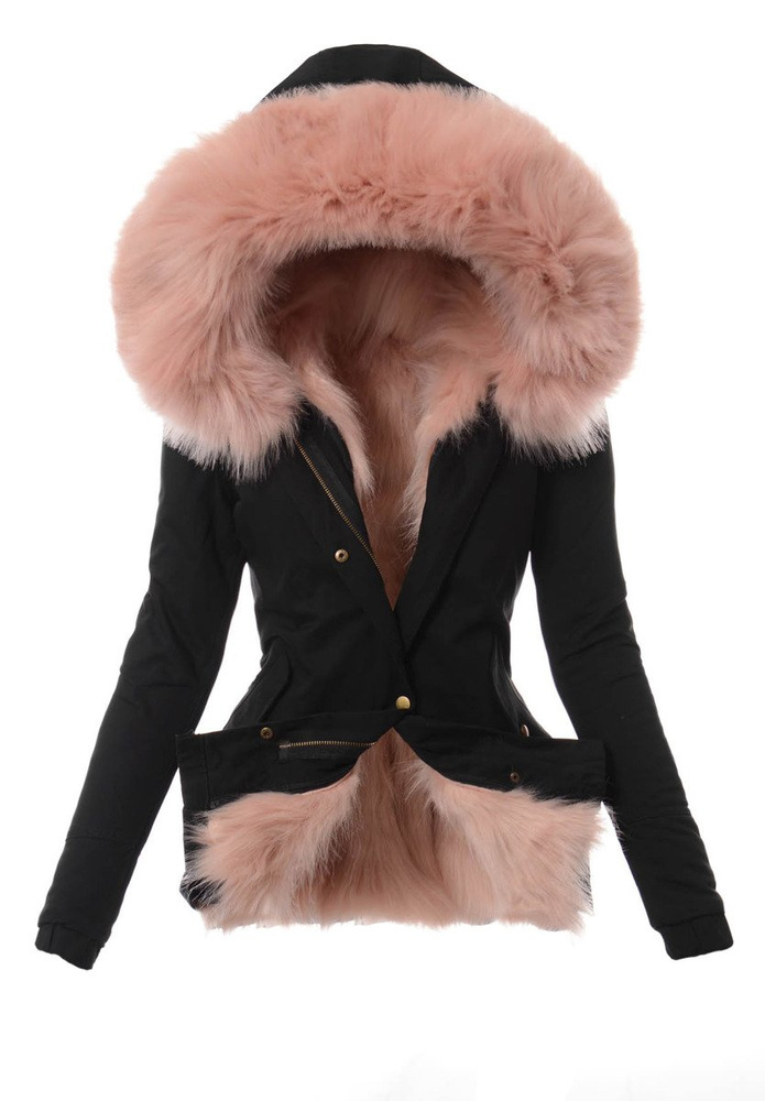 Damska Kurtka Parka Zimowa 3w1 Czarna z Różowym Futerkiem