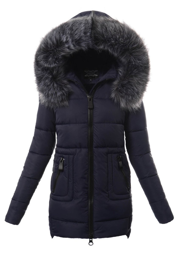 Rewelacyjna kurtka damska w kolorze granatowym. Wypełnienie kurtki zapewnia ciepło w mroźne dni. Kurtka w środku wykończona jest podszewką. Rękawy kurtki są ocieplane, wykończone podszewką. Kurtka zasuwana jest na suwak. Kurtka posiada z przodu dwie kieszenie zasuwane na suwaki. Nieodpinany kaptur zapewnia ciepło w wietrzne zimowe dni. Odpinane futerko przy kapturze. Kurtka posiada wysoką stójkę. Kurtka w mankietach posiada ściągacz. Kurtka wykonana jest z materiałów najwyższej jakości. Kurtka ocieplona jest bardzo wysokiej jakości wypełnieniem syntetycznym, które zapewnia doskonałą termoizolację oraz wysoki komfort użytkowania.