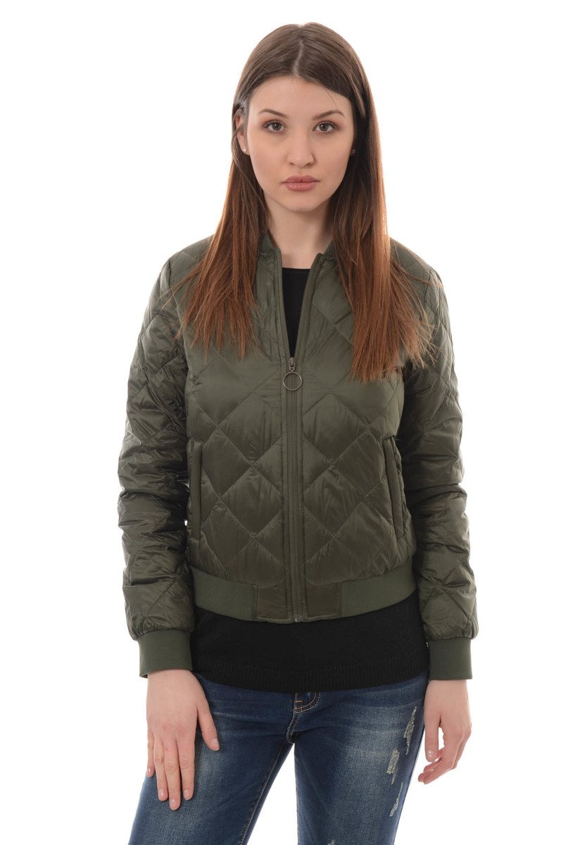 Rewelacyjna damska wiosenna kurtka w kolorze zielonym. Kurtka zasuwana jest na suwak. Modne pikowania kurtki nadają jej kobiecości. Kurtka jest delikatnie ocieplona naturalnym puchem. Kurtka posiada dwie kieszenie na dole zasuwane na suwaki. Bawełniany ściągacz na dole oraz w mankietach zapewnia lepsze dopasowanie kurtki do ciała. Kurtka posiada bawełnianą stójkę przy szyi. Puchowa kurteczka idealnie sprawdzi się jako przejściowa kurteczka na wiosnę oraz jesień, jak również na chłodne letnie wieczory.Kurtka wykonana z materiałów najwyższej jakości.
