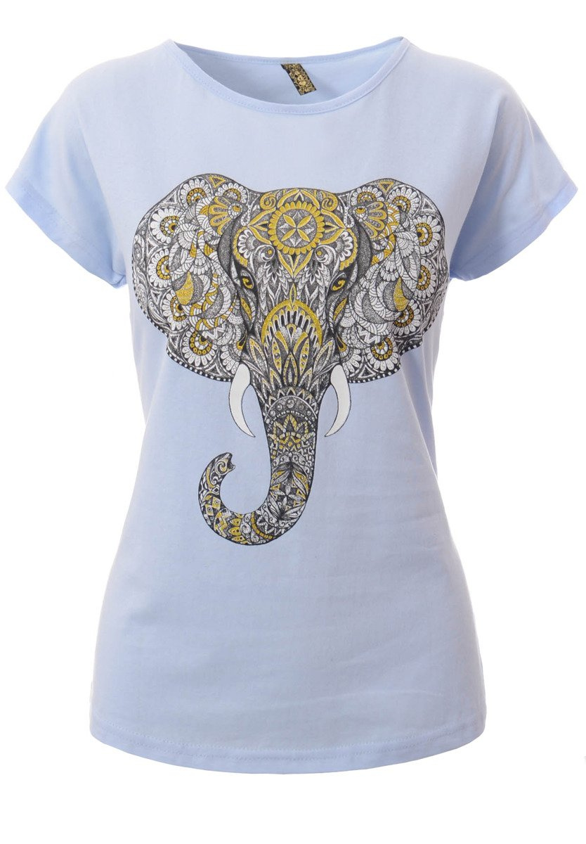 Damska Koszulka Krótki Rękaw T-Shirt Nadruk Słoń Błękitna