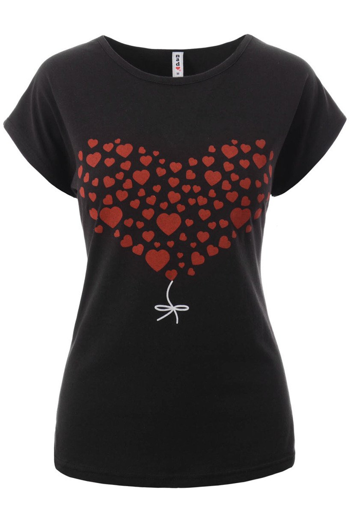Damska Koszulka Krótki Rękaw Nadruk Serce z Serduszek Czarna