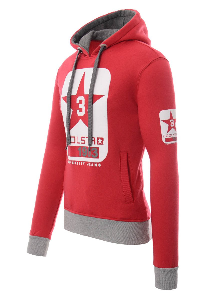 Rewelacyjna męska bluza wkładana przez głowę w kolorze czerwonym. Bluza posiada kaptur ze ściągaczem. Bluza z przodu posiada dwie kieszenie. Bluza posiada nadruk z przodu i na lewym rękawie. Bluza na dole oraz na mankietach posiada ściągacze. Materiał: 65% Bawełna, 35% Poliester.
