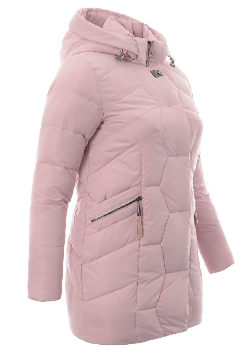 Rewelacyjna kurtka damska w kolorze różowym. Wypełnienie kurtki zapewnia ciepło w mroźne dni. Kurtka w środku wykończona jest podszewką. Rękawy kurtki są ocieplane, wykończone podszewką. Kurtka zapinana jest na podwójny suwak oraz napy. Kurtka posiada z przodu dwie głębokie kieszenie kieszenie zapinane na napy. Odpinany kaptur ze ściągaczem zapewnia ciepło w wietrzne zimowe dni. Przy szyi kurtka posiada ozdobną napę. Kurtka posiada ozdobne suwaki przy kieszeniach. Ponadto w rękawach znajdują się bawełniane ściągacze, które stanowią dodatkowe zabezpieczenie przed zimnem. Kurtka wykonana jest z materiałów najwyższej jakości. Kurtka ocieplona jest bardzo wysokiej jakości puchem syntetycznym DuPont Sorona, które zapewnia doskonałą termoizolację oraz wysoki komfort użytkowania.