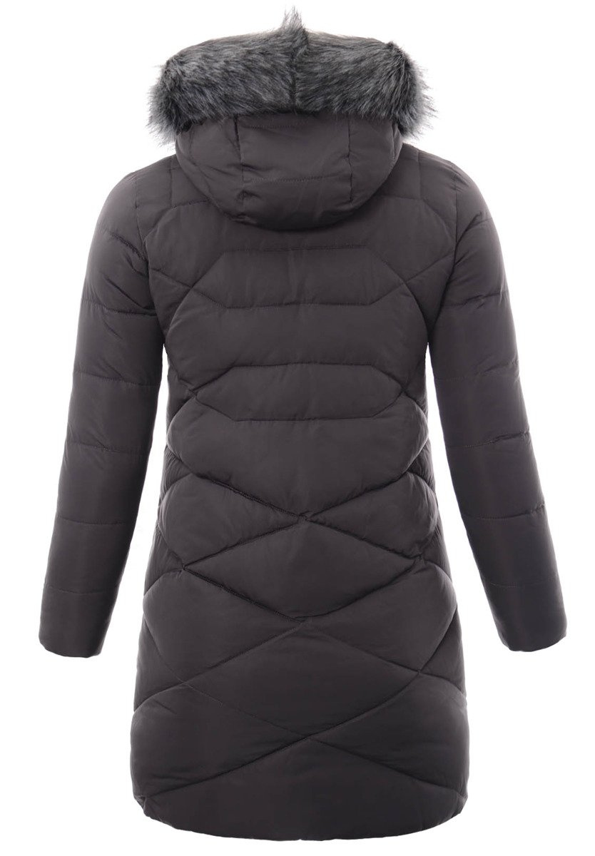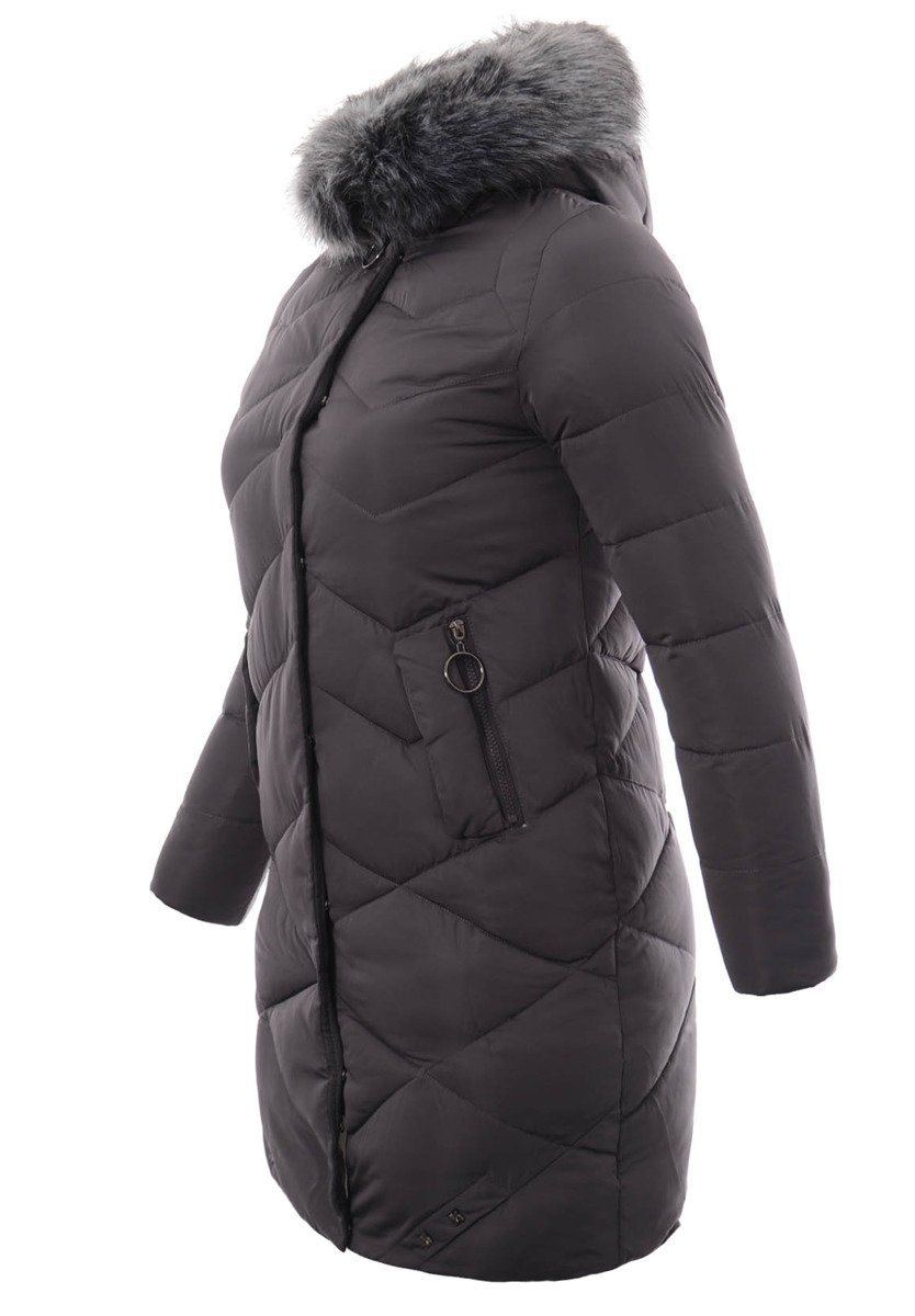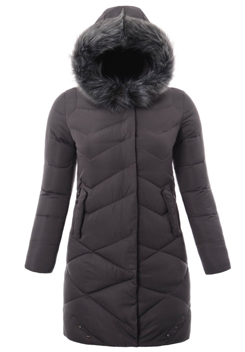 Rewelacyjna kurtka damska w kolorze grafitowym. Wypełnienie kurtki zapewnia ciepło w mroźne dni. Kurtka w środku wykończona jest podszewką. Rękawy kurtki są ocieplane, wykończone podszewką. Kurtka zapinana jest na suwak oraz napy. Kurtka posiada z przodu dwie kieszenie zasuwane na suwak. Nieodpinany kaptur ze ściągaczem zapewnia ciepło w wietrzne zimowe dni. Futerko przy kapturze jest odpinane. Ponadto w rękawach znajdują się bawełniane ściągacze, które stanowią dodatkowe zabezpieczenie przed zimnem. Na dole kurtki znajdują się ozdobne napy. Kurtka wykonana jest z materiałów najwyższej jakości. Kurtka ocieplona jest bardzo wysokiej jakości wypełnieniem syntetycznym DuPont Sorona, które zapewnia doskonałą termoizolację oraz wysoki komfort użytkowania.