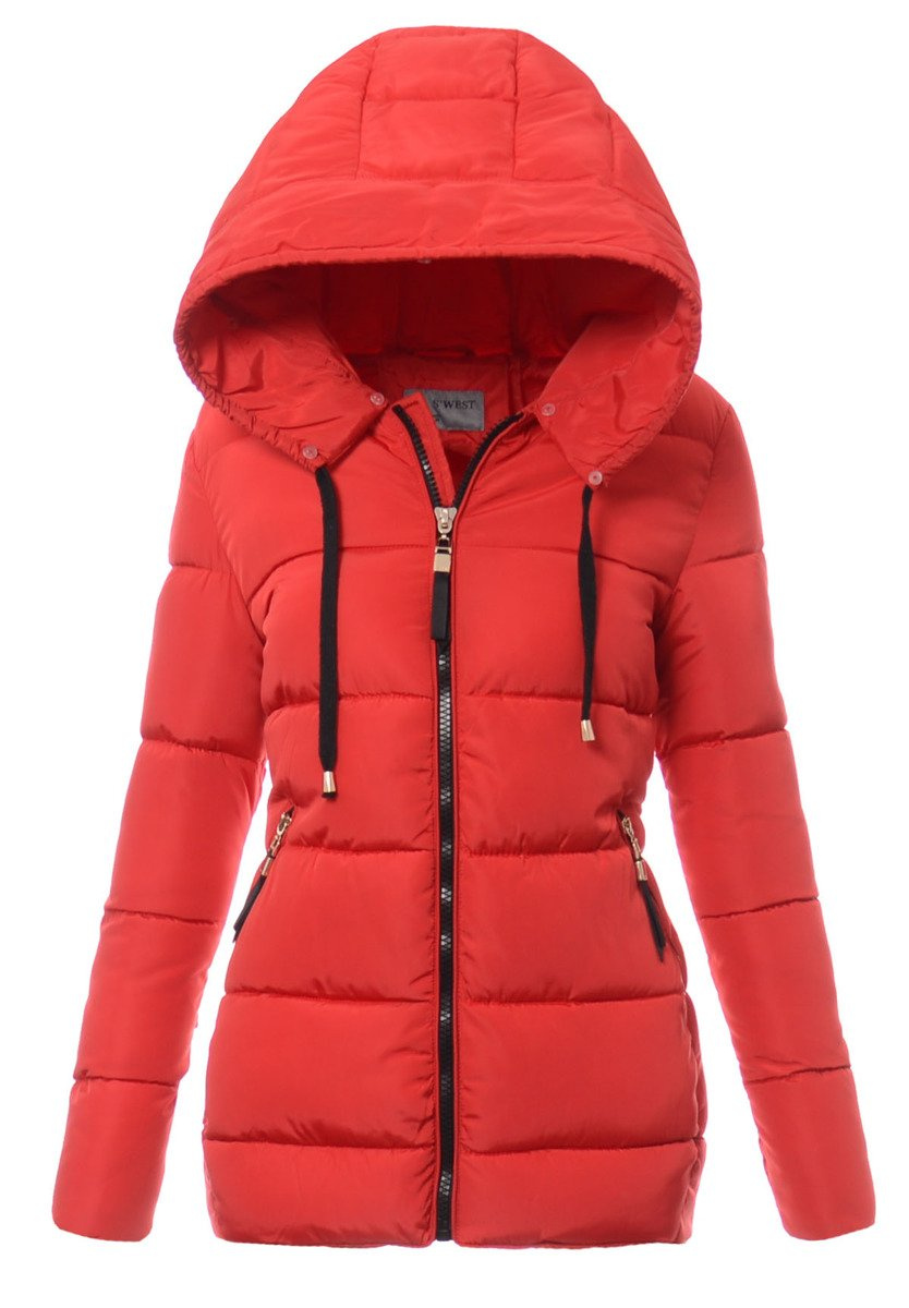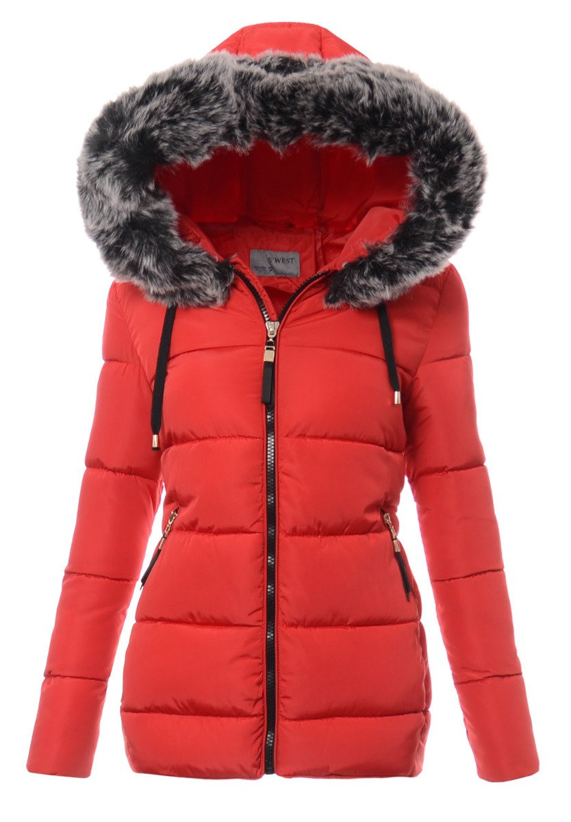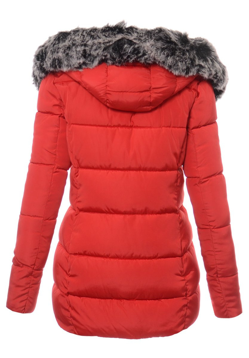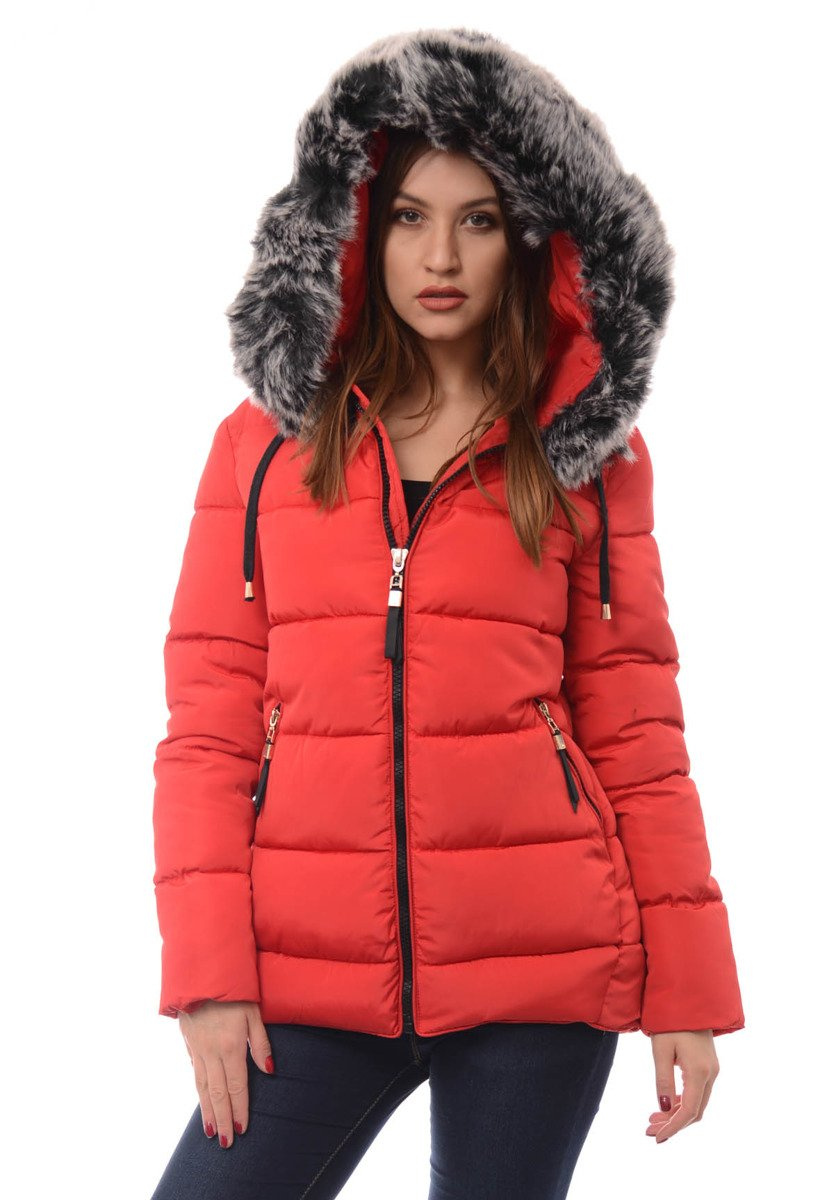 Rewelacyjna kurtka damska w kolorze czerwonym. Ciepłe wypełnienie kurtki zapewnia ciepło w mroźne dni. Kurtka w środku wykończona jest podszewką. Kurtka zapinana jest na suwak w kolorze czarnym. Delikatnie rozszerzany fason kurtki idealnie dopasowuję się do każdej kobiecej sylwetki. Kurtka posiada z przodu dwie kieszenie. Nieodpinany kaptur ze ściągaczem zapewnia ciepło w wietrzne zimowe dni. Futerko przy kapturze jest odpinane. Kurtka posiada ozdobne elementy w kolorze złotym. Tył kurtki jest dłuży o ok. 6cm. Kurtka wykonana jest z materiałów najwyższej jakości. Kurtka ocieplona jest bardzo wysokiej jakości wypełnieniem syntetycznym, które zapewnia doskonałą termoizolację oraz wysoki komfort użytkowania.
