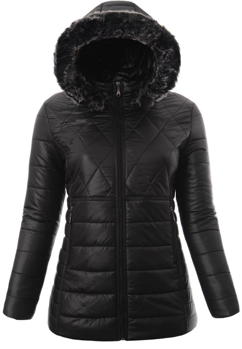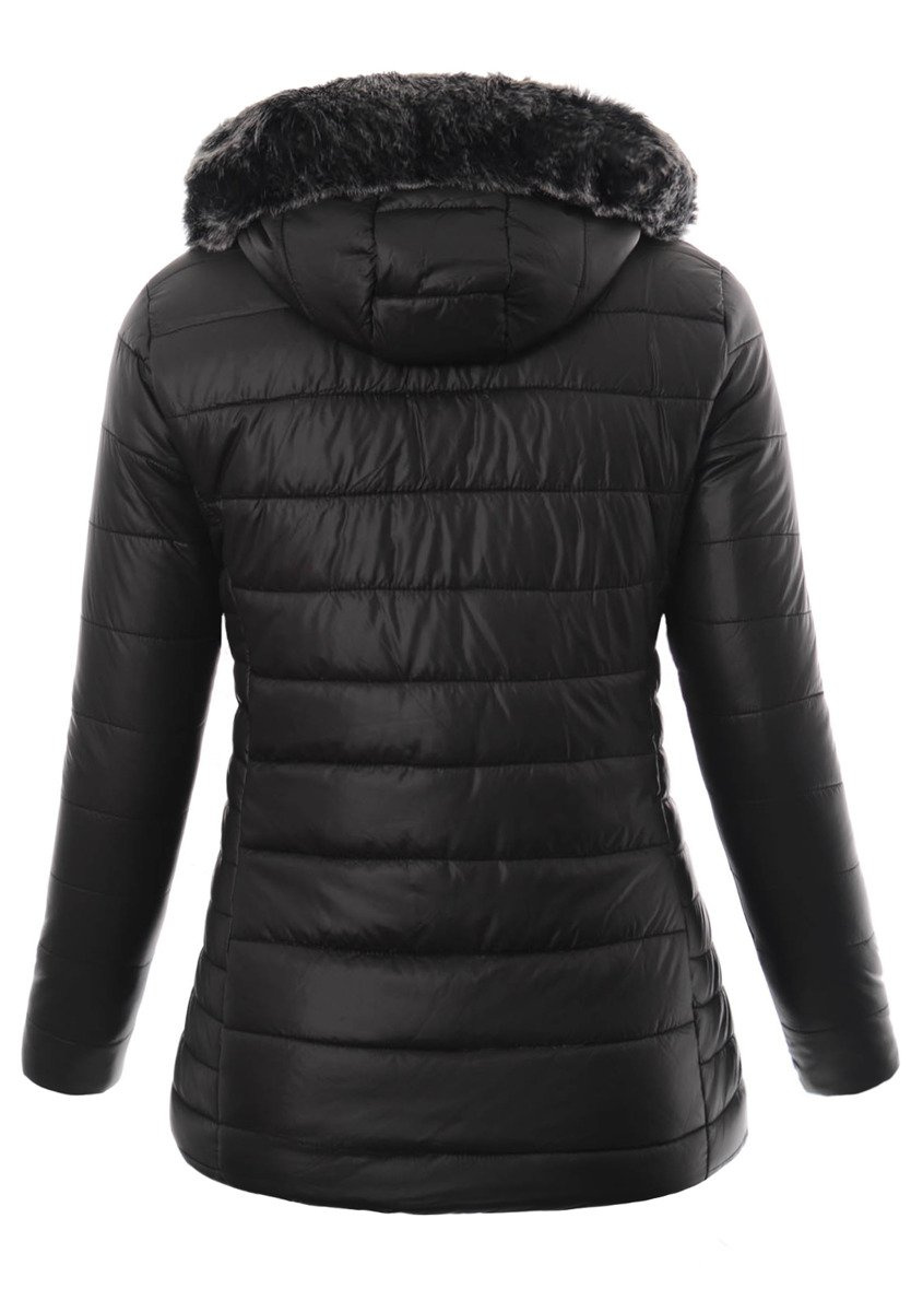 Rewelacyjna kurtka damska w kolorze czarnym. Wypełnienie kurtki zapewnia ciepło w mroźne dni. Kurtka w środku wykończona jest przyjemnym futerkiem. Rękawy kurtki są ocieplane, wykończone podszewką. Kurtka zasuwana jest na suwak. Kurtka posiada z przodu dwie kieszenie zasuwane na suwaki. Odpinany kaptur zapewnia ciepło w wietrzne zimowe dni. Futerko przy kapturze jest nieodpinane. Kurtka wykonana jest z materiałów najwyższej jakości. Kurtka ocieplona jest bardzo wysokiej jakości wypełnieniem syntetycznym, które zapewnia doskonałą termoizolację oraz wysoki komfort użytkowania.