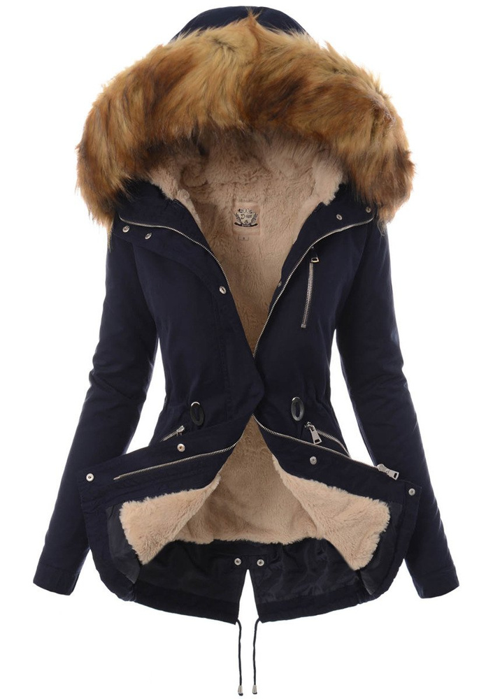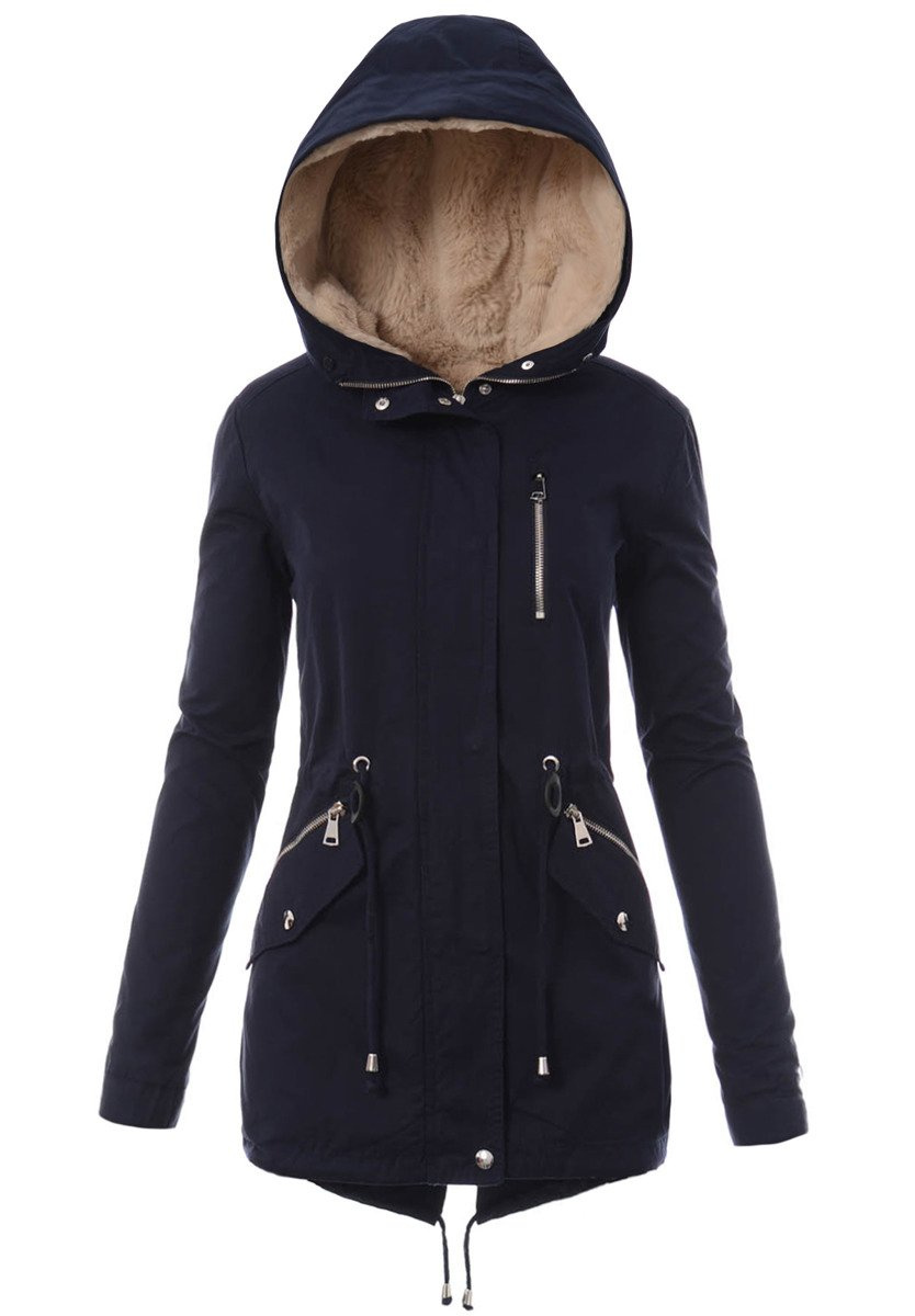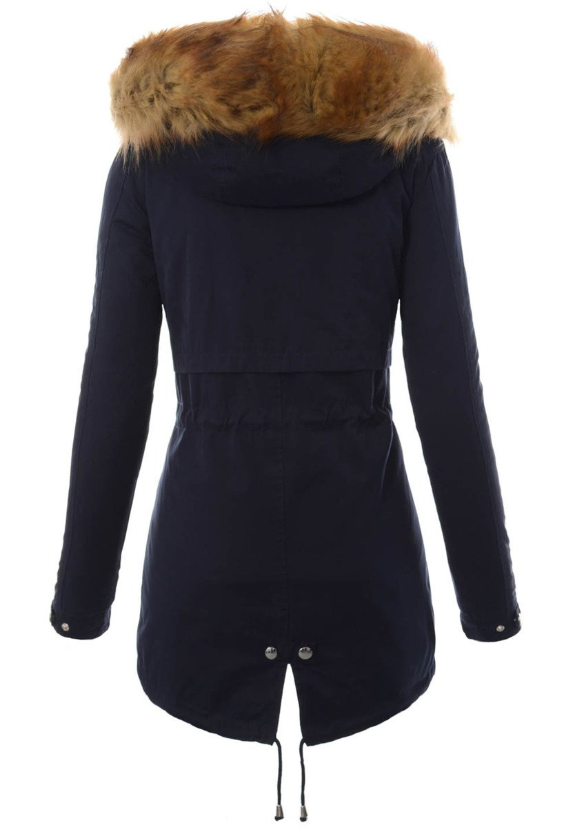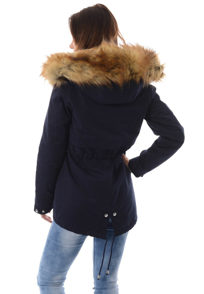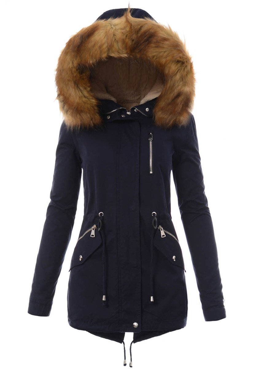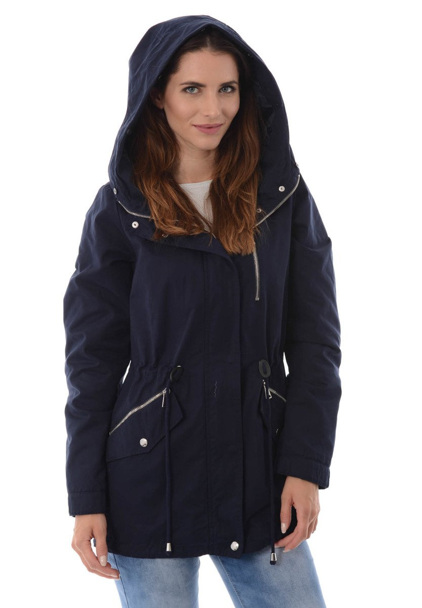 Rewelacyjna, najmodniejsza w tym sezonie zimowa kurtka parka w kolorze granatowym. Kurtka ma odpinana podpinkę dzięki czemu idealnie sprawdzi się również jako kurtka wiosenna lub jesienna. Rękawy kurtki są ocieplane wykończone materiałem. Podpinka w kurtce jest odpinana całościowo łącznie z rękawami oraz kapturem. Futerko przy kapturze kurtki jest odpinane niezależnie od podpinki. Ściągacz w pasie oraz na dole pozwala na dowolne dopasowanie kurtki do sylwetki. Kurtka posiada dwie duże kieszenie z przodu zapinane na zatrzaski, a nad nimi ozdobne suwaki. Na górze kurtka ma jedną atrapę kieszeni zasuwaną na suwak. Parka zapinana jest na napy oraz suwak. Kaptur kurtki jest nieodpinany. Mankiety kurtki można regulować za pomocą zatrzasków. Tył kurtki jest dłuższy o ok. 7 cm od jej przodu. Kurtka parka wykonana jest z materiałów najwyższej jakości. Materiał: 50% Poliester, 40% Bawełna, 10% Nylon.
