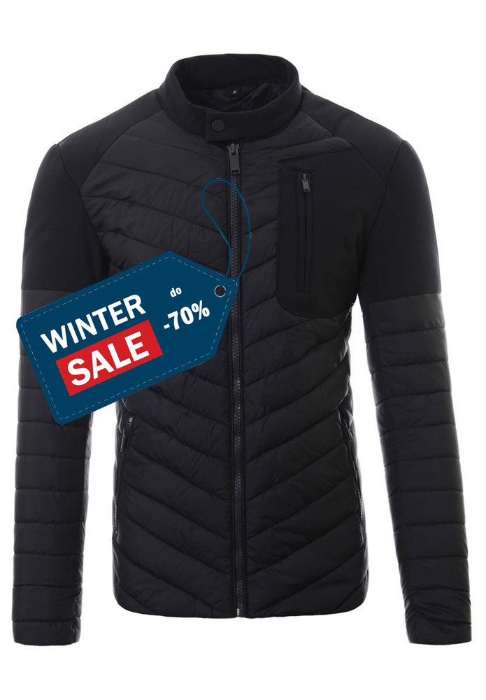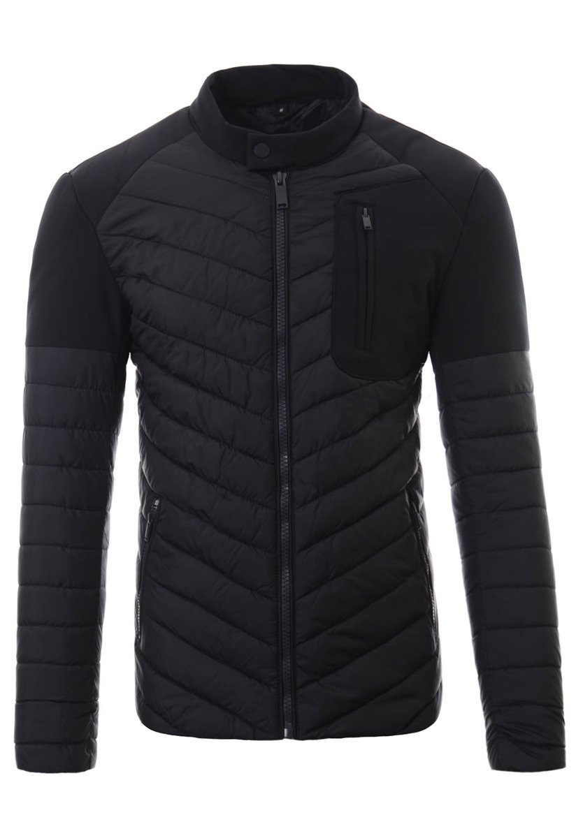 Męska kurtka wiosenna / jesienna w kolorze granatowym. Kurtka zasuwana jest na suwak. Na dole ma dwie kieszenie zasuwane na suwaki, a na piersi jedną kieszeń zasuwaną na suwak. Kurtka na górze posiada stójkę zapinaną na napę. Kurtka wykonana jest z materiałów najwyższej jakości. Kurtka ocieplona jest bardzo wysokiej jakości wypełnieniem syntetycznym, które zapewnia doskonałą termoizolację oraz wysoki komfort użytkowania.