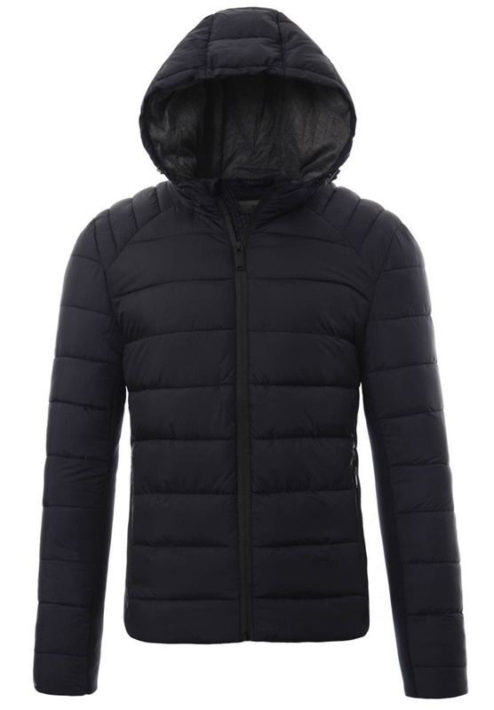 Męska zimowa kurtka w kolorze granatowym. Zapinana na suwak. Kurtka posiada dwie duże kieszenie na dole zasuwane na suwaki. Nieodpinany kaptur ze ściągaczem zapewnia ciepło w zimowe, wietrze dni. Kurtka wykonana jest z materiałów najwyższej jakości. Kurtka ocieplona jest bardzo wysokiej jakości wypełnieniem syntetycznym, które zapewnia doskonałą termoizolację oraz wysoki komfort użytkowania.