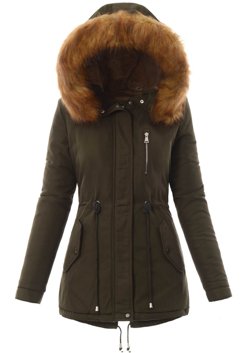 Rewelacyjna, najmodniejsza w tym sezonie zimowa kurtka parka w kolorze zielonym. Kurtka do ściągacza ocieplana jest futerkiem. Rękawy kurtki są ocieplane i wykończone materiałem. Nieodpinany kaptur z odpinanym futerkiem zapewnia ciepło w wietrzne zimowe dni. Futerko przy kapturze kurtki jest odpinane. Ściągacz w pasie i na dole pozwala na dowolne dopasowanie kurtki do sylwetki. Kurtka posiada dwie duże kieszenie z przodu na dole zapinane na napy oraz jedną atrapę kieszeni na piersi. Parka zapinana jest na napy oraz suwak. Mankiety kurtki można regulować za pomocą nap. Kurtka ocieplona jest bardzo wysokiej jakości wypełnieniem syntetycznym, które zapewnia doskonałą termoizolację oraz wysoki komfort użytkowania. Kurtka wykonana jest z materiałów najwyższej jakości. Materiał: 100% Poliester.