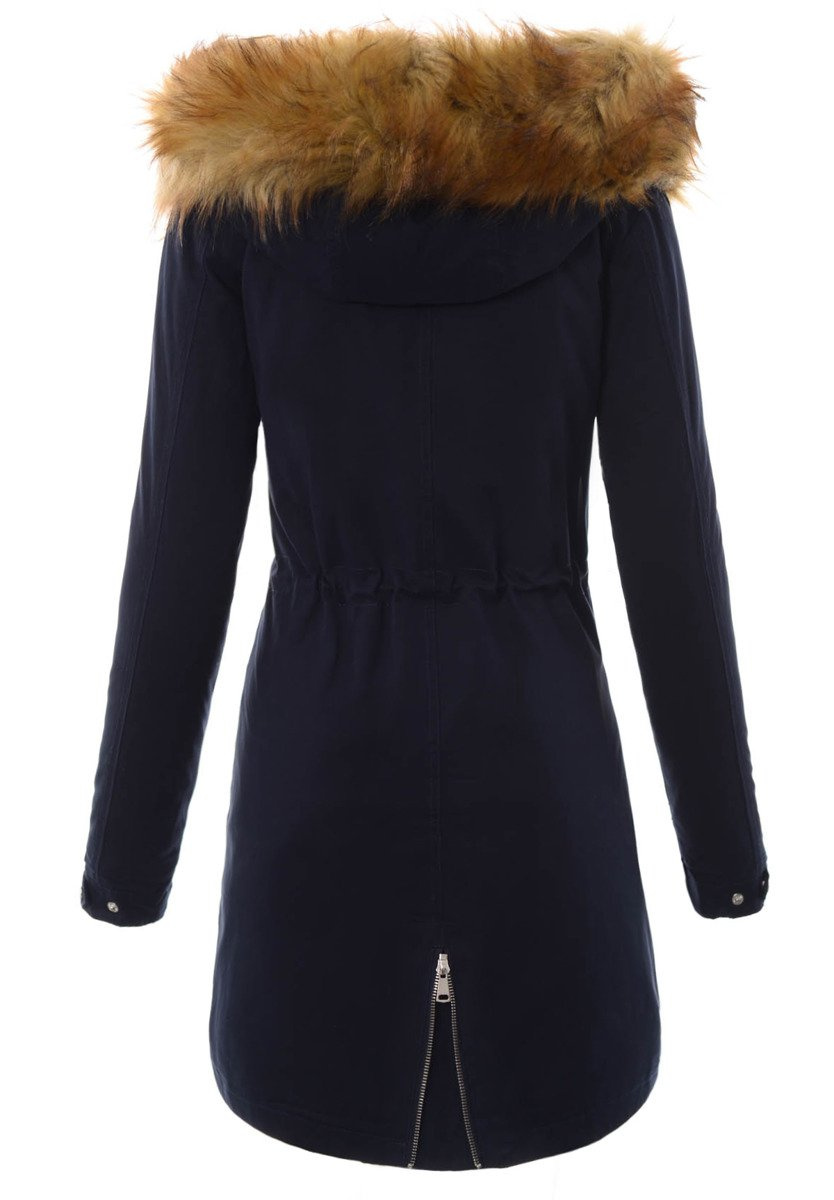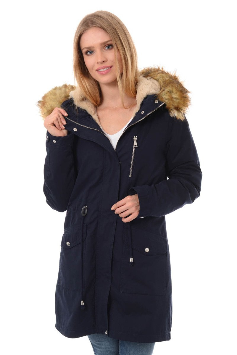 Rewelacyjna, najmodniejsza w tym sezonie zimowa kurtka parka w kolorze granatowym. Kurtka ma odpinana podpinkę dzięki czemu idealnie sprawdzi się również jako kurtka wiosenna lub jesienna. Rękawy kurtki są ocieplane i wykończone materiałem. Podpinka w kurtce jest odpinana całościowo łącznie z rękawami oraz kapturem. Futerko przy kapturze kurtki jest odpinane niezależnie od podpinki. Ściągacz w pasie pozwala na dowolne dopasowanie kurtki do sylwetki. Kurtka posiada dwie duże kieszenie z przodu na dole zapinane na zatrzaski oraz jedną atrapę kieszeni na piersi zasuwaną na suwak. Parka zapinana jest na napy oraz suwak. Kaptur kurtki jest nieodpinany i posiada odpinane futerko. Mankiety kurtki można regulować za pomocą zatrzasków.Suwaki i napy w kurtce są w kolorze srebrnym. Kurtka wykonana jest z materiałów najwyższej jakości. Materiał: 50% Poliester, 40% Bawełna, 10% Nylon..