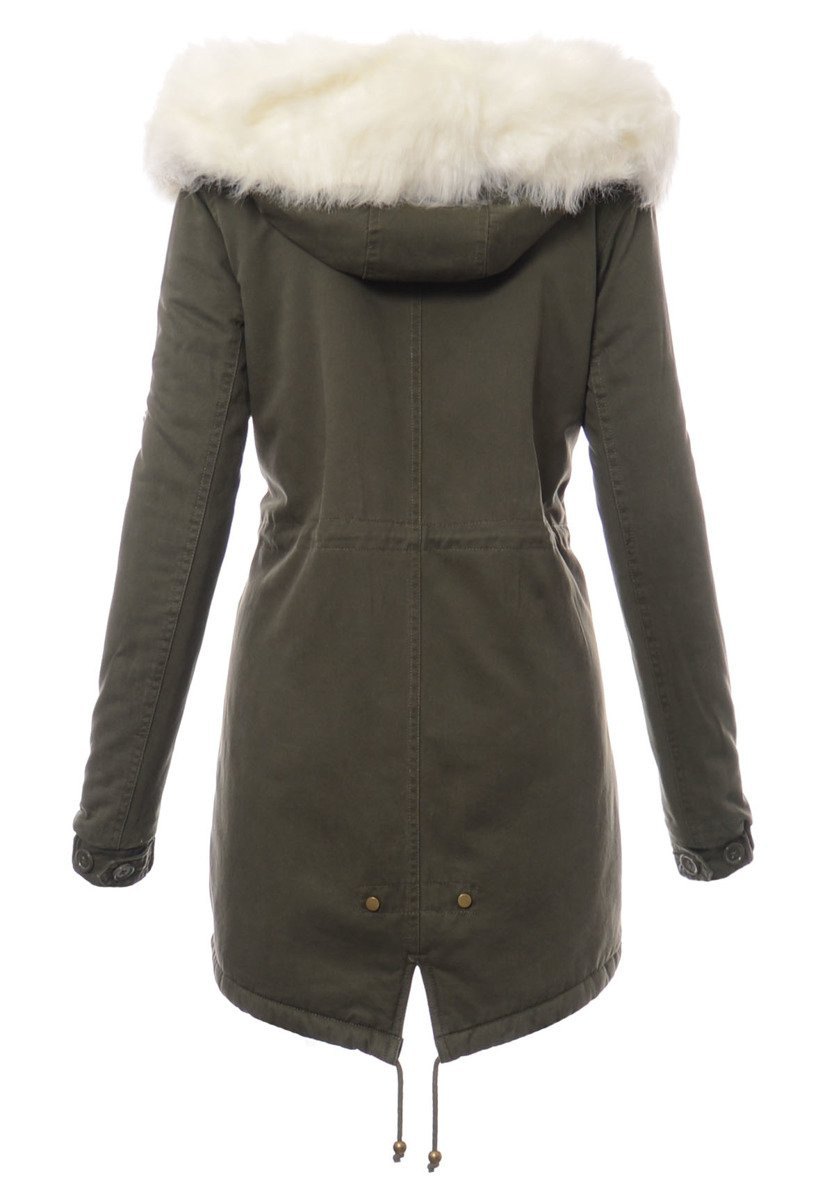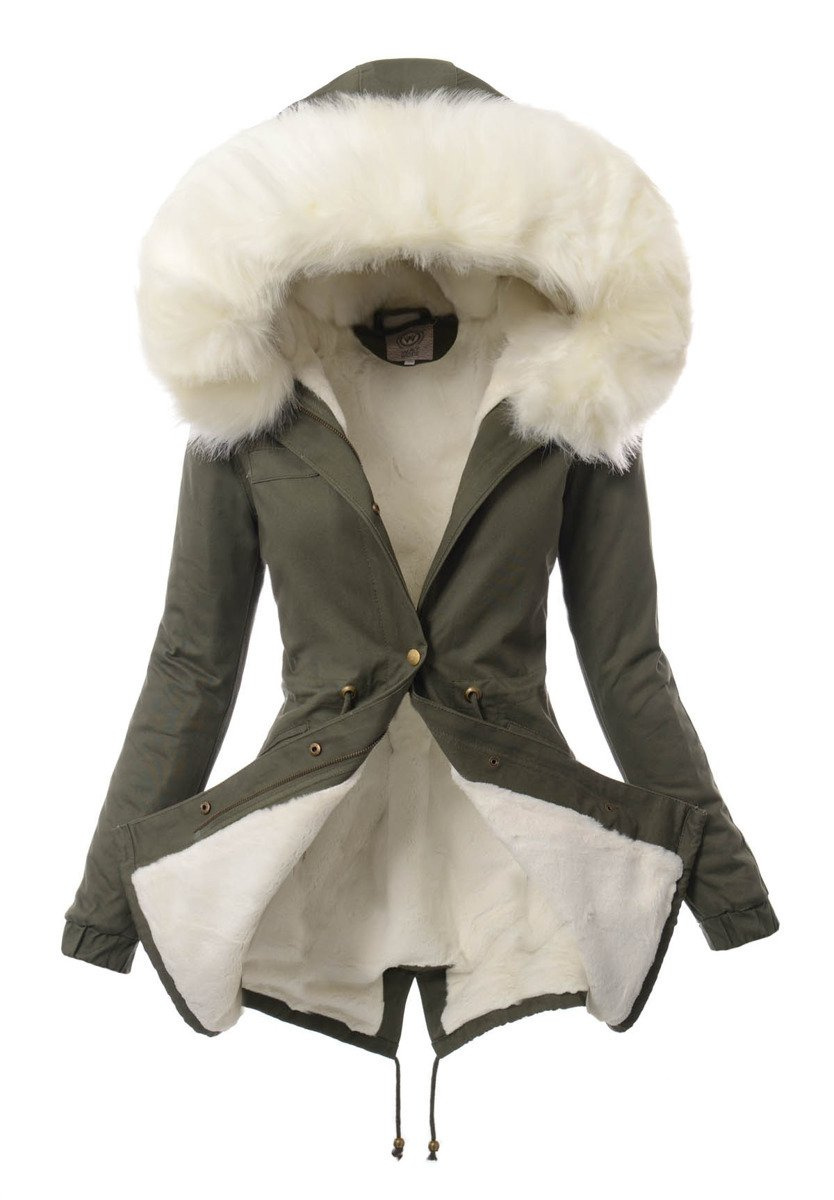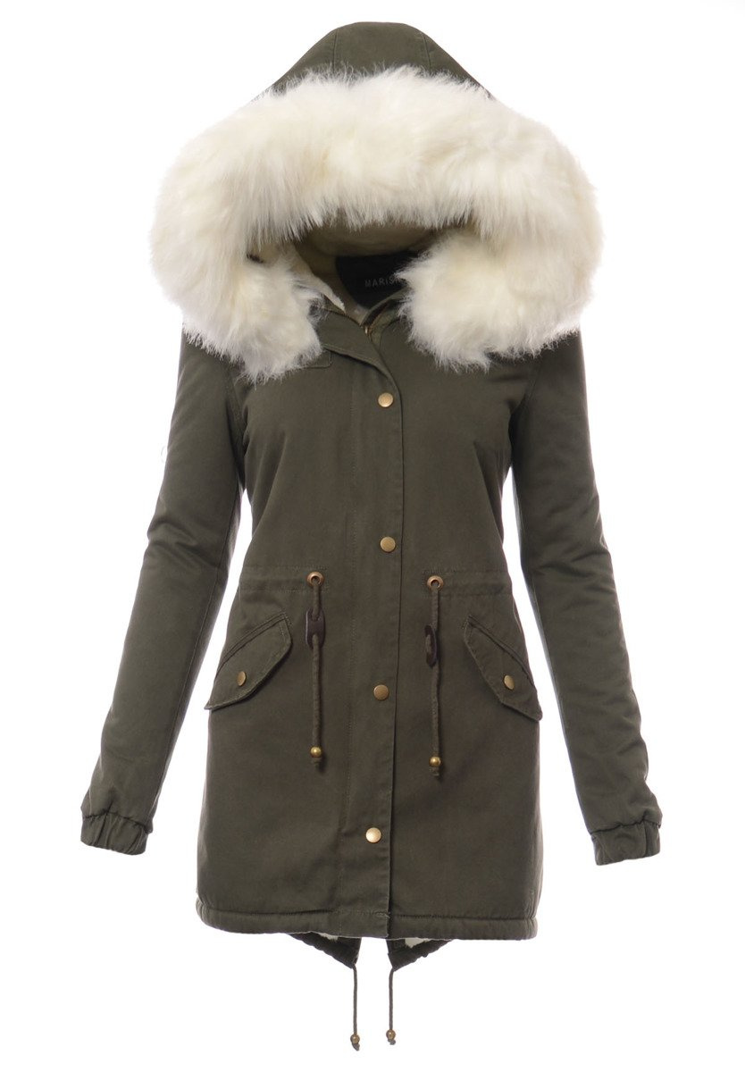 Piękna Damska Kurtka Parka Iwet Zielona z Białym Futerkiem