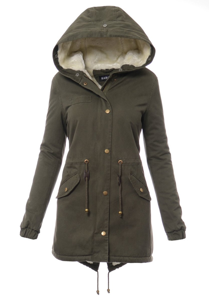 Rewelacyjna, najmodniejsza w tym sezonie zimowa kurtka parka w kolorze zielonym z pięknym futrem w kolorze białym. Parka zapinana jest na suwak oraz napy. Kurtka ocieplana jest przyjemnym futerkiem na całej długości oraz w kapturze, rękawy kurtki są ocieplone, wykończone podszewką. Futerko przy kapturze kurtki jest odpinane. Nieodpinany kaptur zapewni ciepło w mroźne i wietrzne dni. Ściągacz w pasie oraz na dole na troczki pozwala na dowolne dopasowanie kurtki do sylwetki. Kurtka posiada dwie duże kieszenie z przodu na dole zapinane na napy. Napy oraz suwak w kurtce są w kolorze złotym. Tył kurtki jest dłuższy o ok. 8 cm od jej przodu. Kurtka w mankietach posiada gumkę ściągającą, oraz regulację mankietów guzikami. Kurtka wykonana jest z materiałów najwyższej jakości. Materiał: 100% Bawełna.