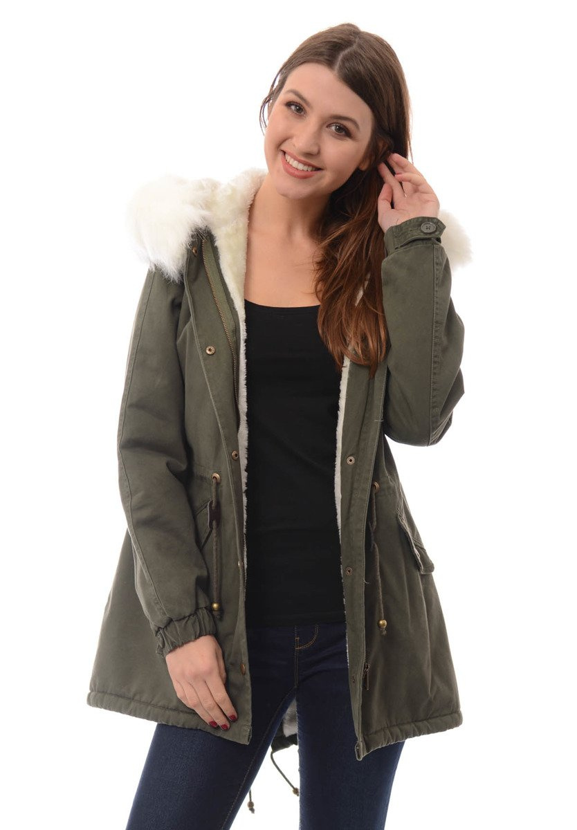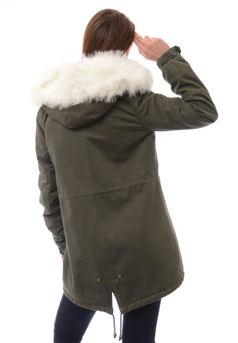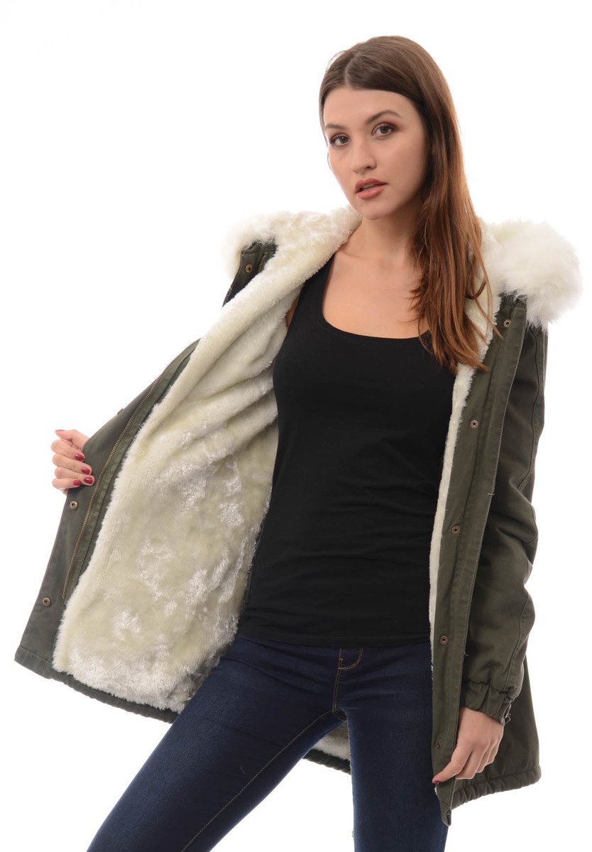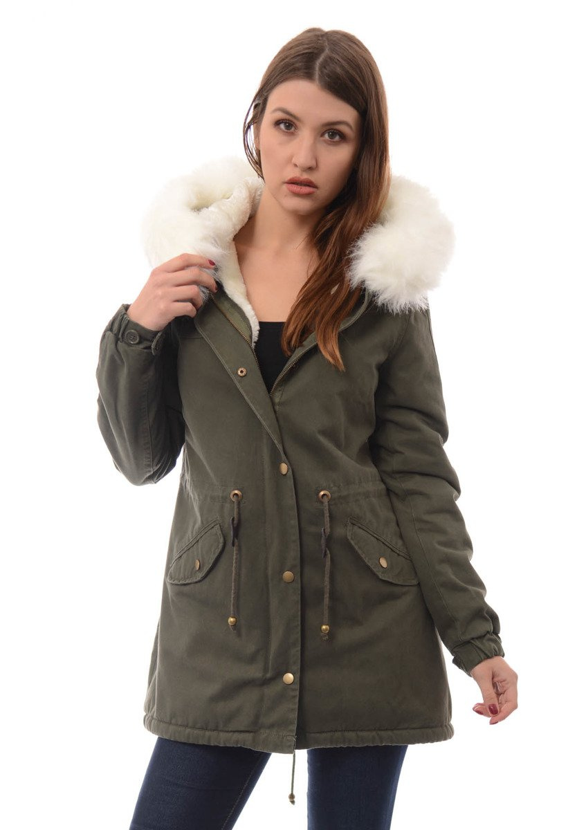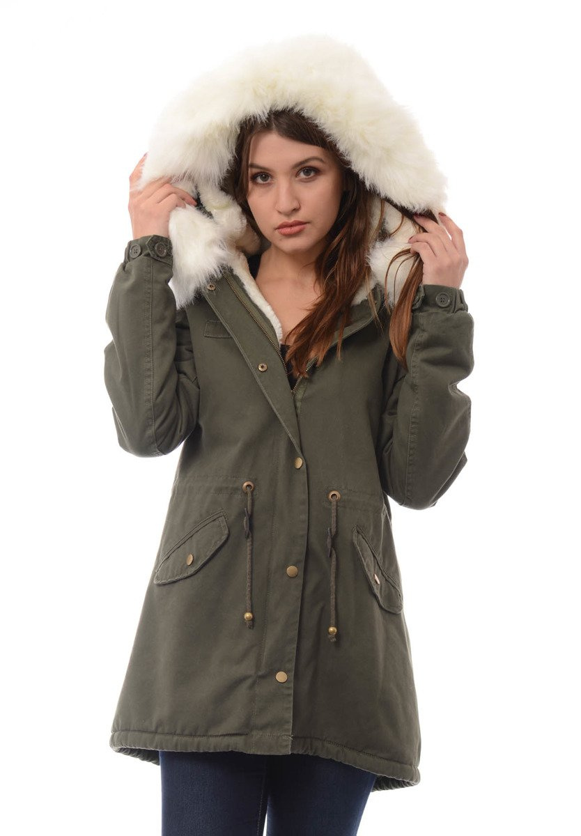 Opinie o Piękna Damska Kurtka Parka Iwet Zielona z Białym Futerkiem