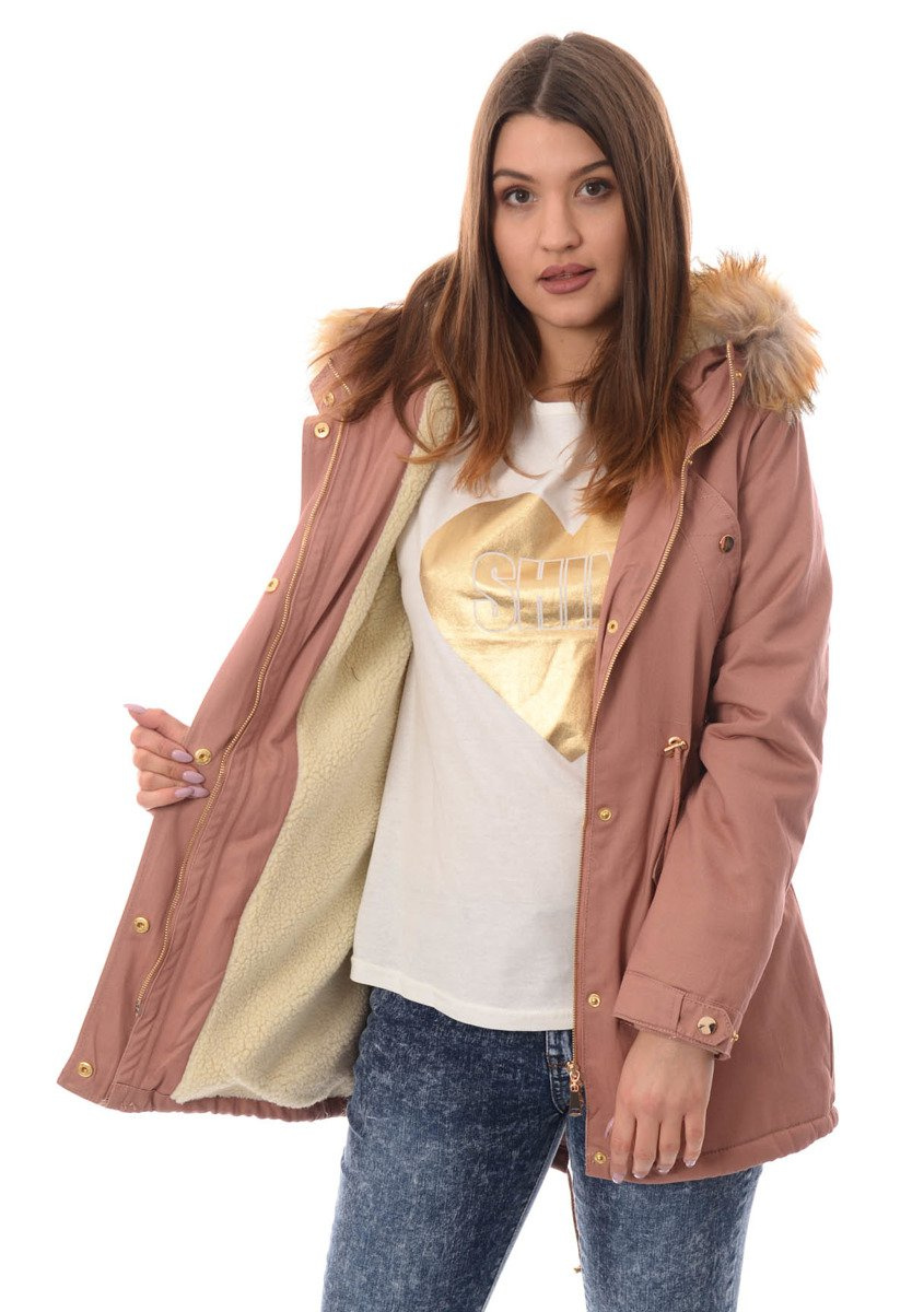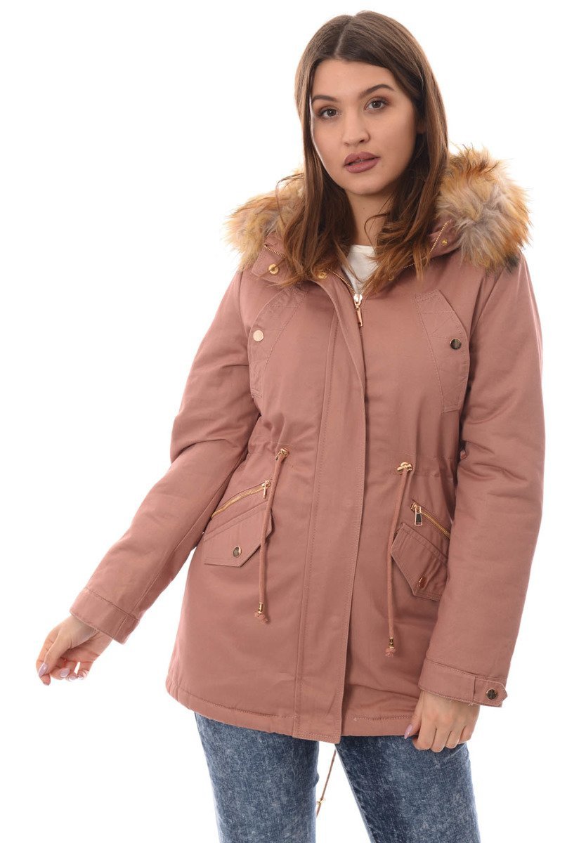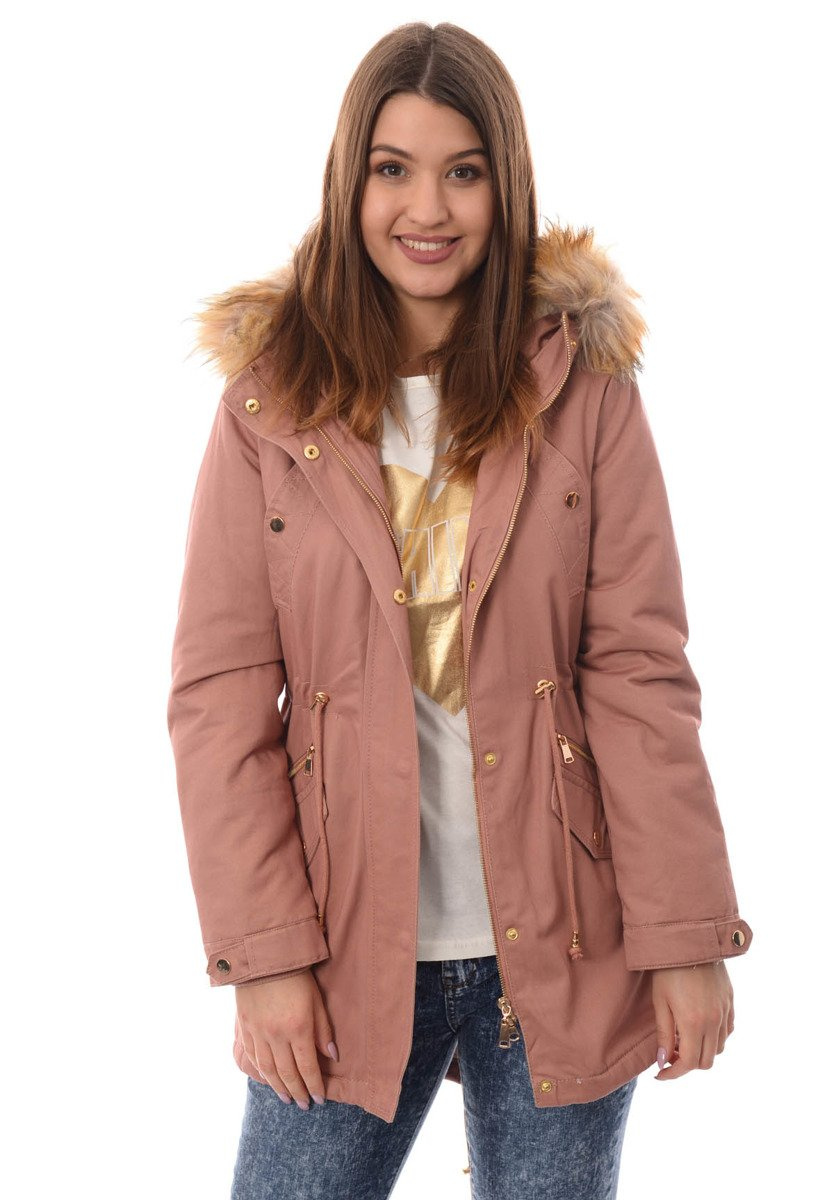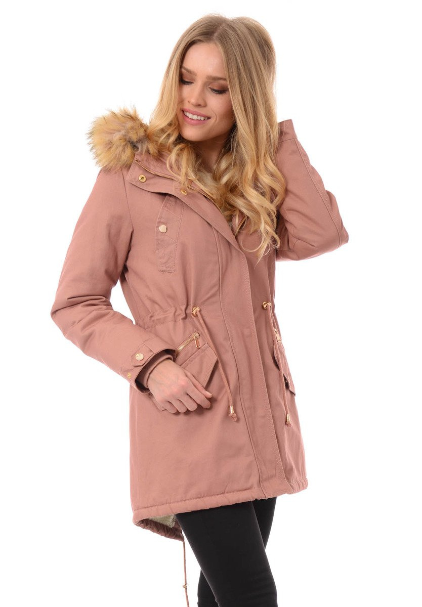 Rewelacyjna, najmodniejsza w tym sezonie zimowa kurtka parka w kolorze różowym. Parka zapinana jest na suwak oraz napy. Kurtka ocieplana jest przyjemnym futerkiem na całej długości oraz w kapturze, rękawy kurtki są ocieplone, wykończone podszewką. Futerko przy kapturze kurtki jest odpinane. Nieodpinany kaptur zapewni ciepło w mroźne i wietrzne dni. Ściągacz w pasie oraz na dole na troczki pozwala na dowolne dopasowanie kurtki do sylwetki. Kurtka posiada dwie kieszenie na dole zasuwane na suwaki, a pod nimi atrapy kieszeni zapinane na napy, oraz dwie kieszenie na piersiach zapinane na napy. Kurtka w mankietach posiada bawełniane ściągacze oraz regulację napami. Napy oraz suwak w kurtce są w kolorze złotym. Tył kurtki jest dłuższy o ok. 8 cm od jej przodu. Kurtka w mankietach posiada gumkę ściągającą, oraz regulację mankietów guzikami. Kurtka wykonana jest z materiałów najwyższej jakości. Materiał: 100% Bawełna.