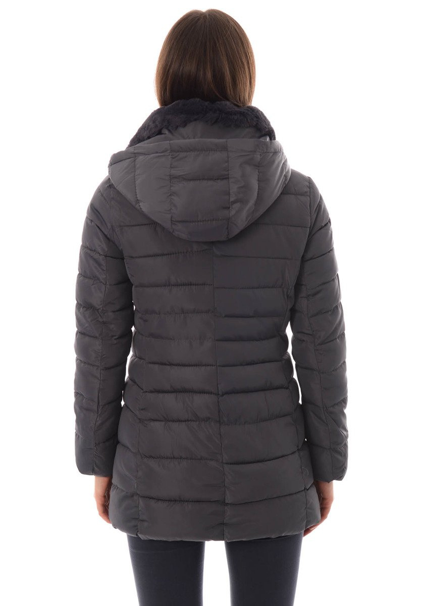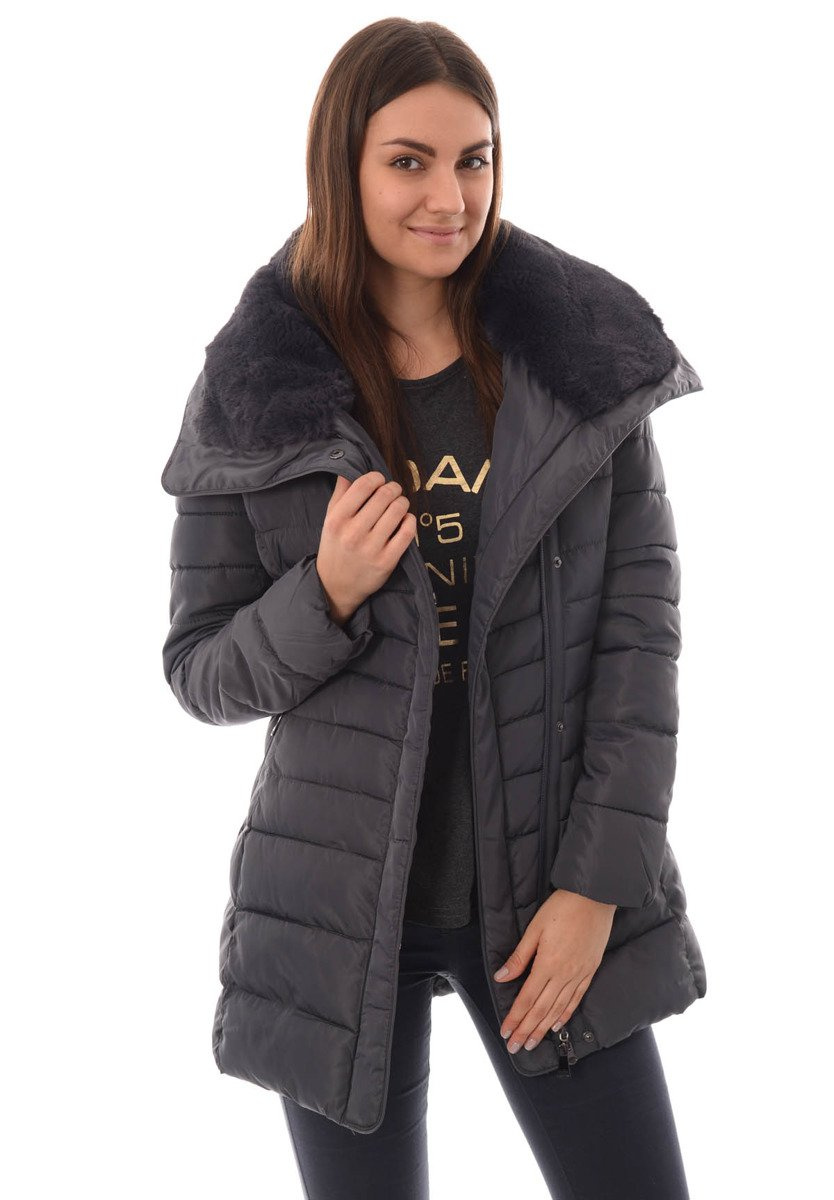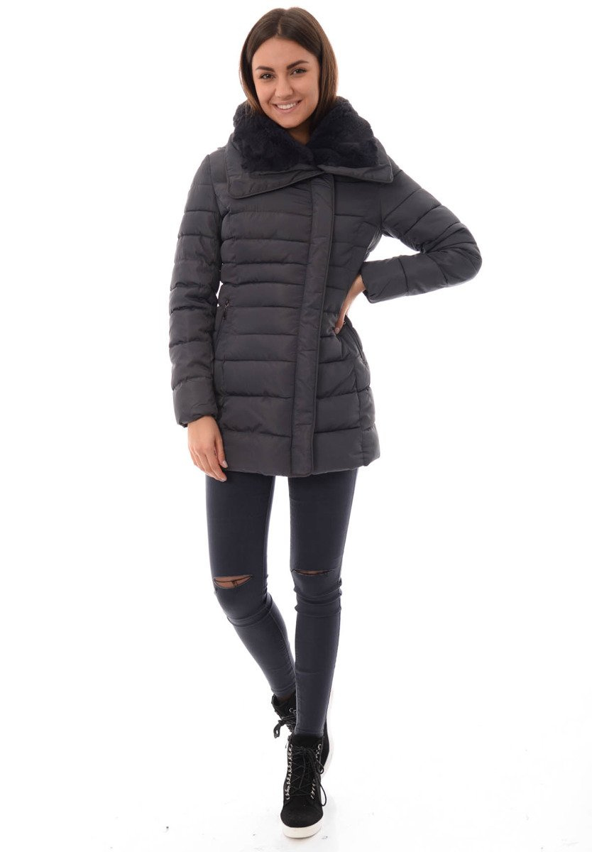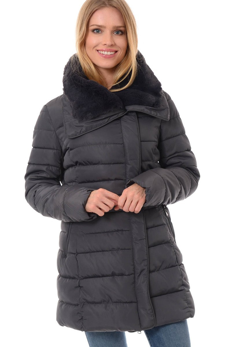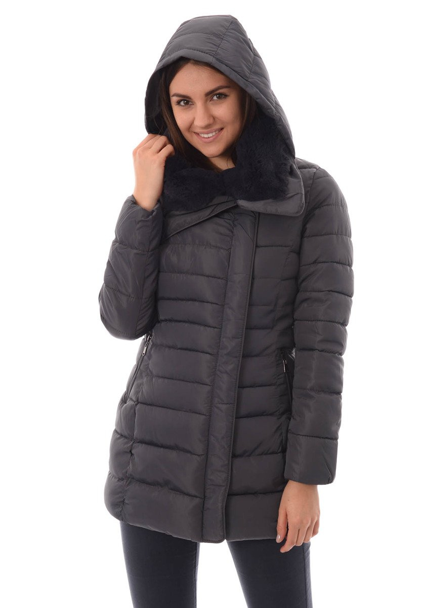 Rewelacyjna kurtka damska w kolorze szarym. Wypełnienie kurtki zapewnia ciepło w mroźne dni. Kurtka w środku wykończona jest materiałem. Rękawy kurtki są ocieplane, wykończone podszewką. Kurtka zapinana jest na suwak oraz napy. Kurtka posiada z przodu dwie kieszenie zasuwane na suwaki. Odpinany kaptur zapewnia ciepło w wietrzne zimowe dni. Kołnierz kurtki wykończony jest przyjemnym futerkiem. Kurtka w mankietach posiada ściągacze. Kurtka wykonana jest z materiałów najwyższej jakości. Kurtka ocieplona jest bardzo wysokiej jakości wypełnieniem syntetycznym, które zapewnia doskonałą termoizolację oraz wysoki komfort użytkowania. Model taliowany idealnie podkreślający damską sylwetkę.