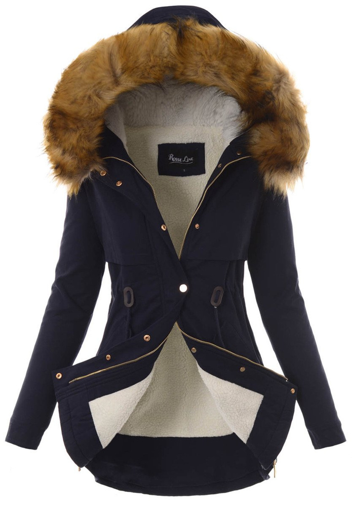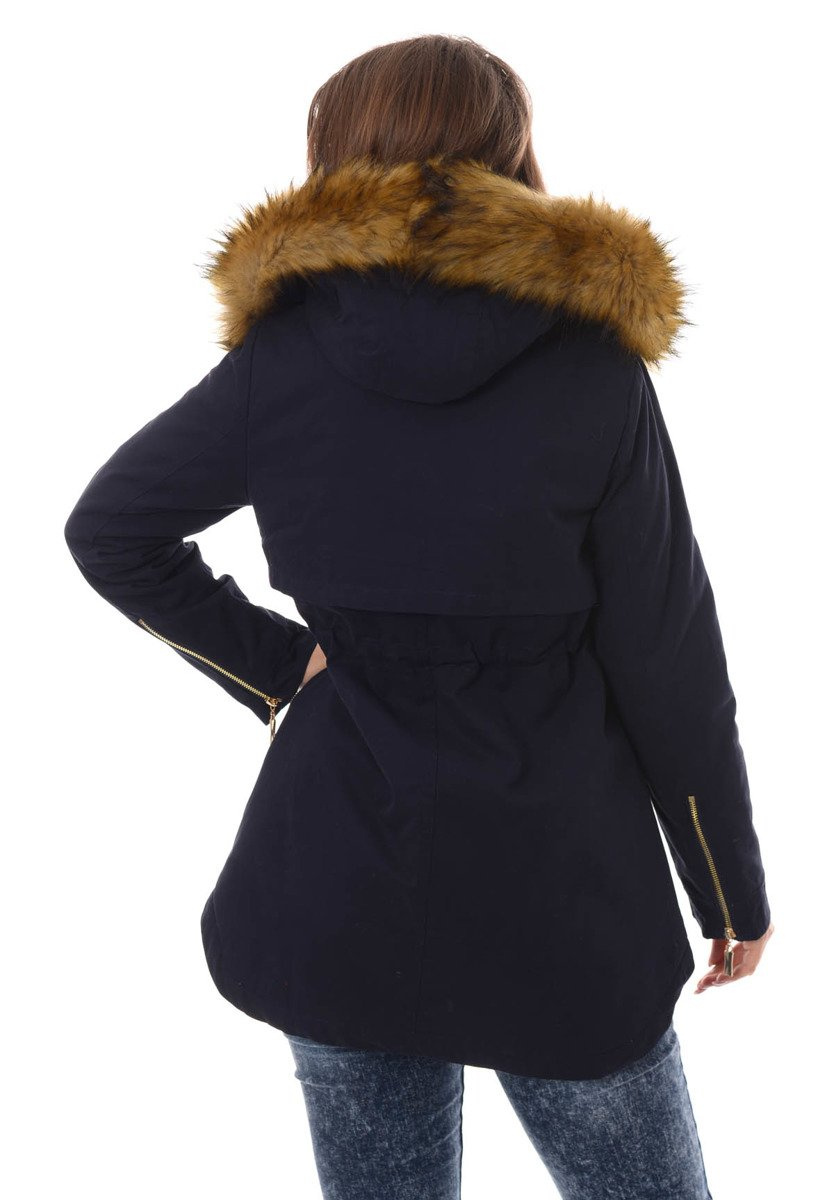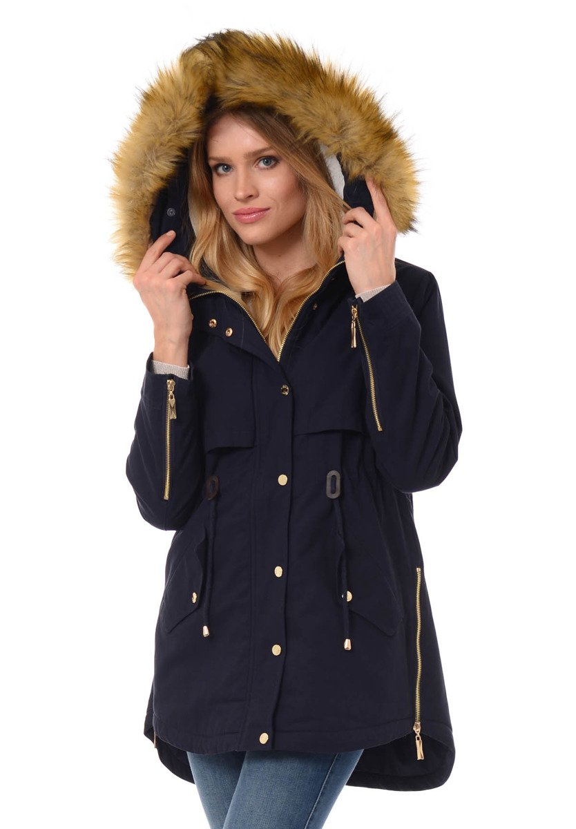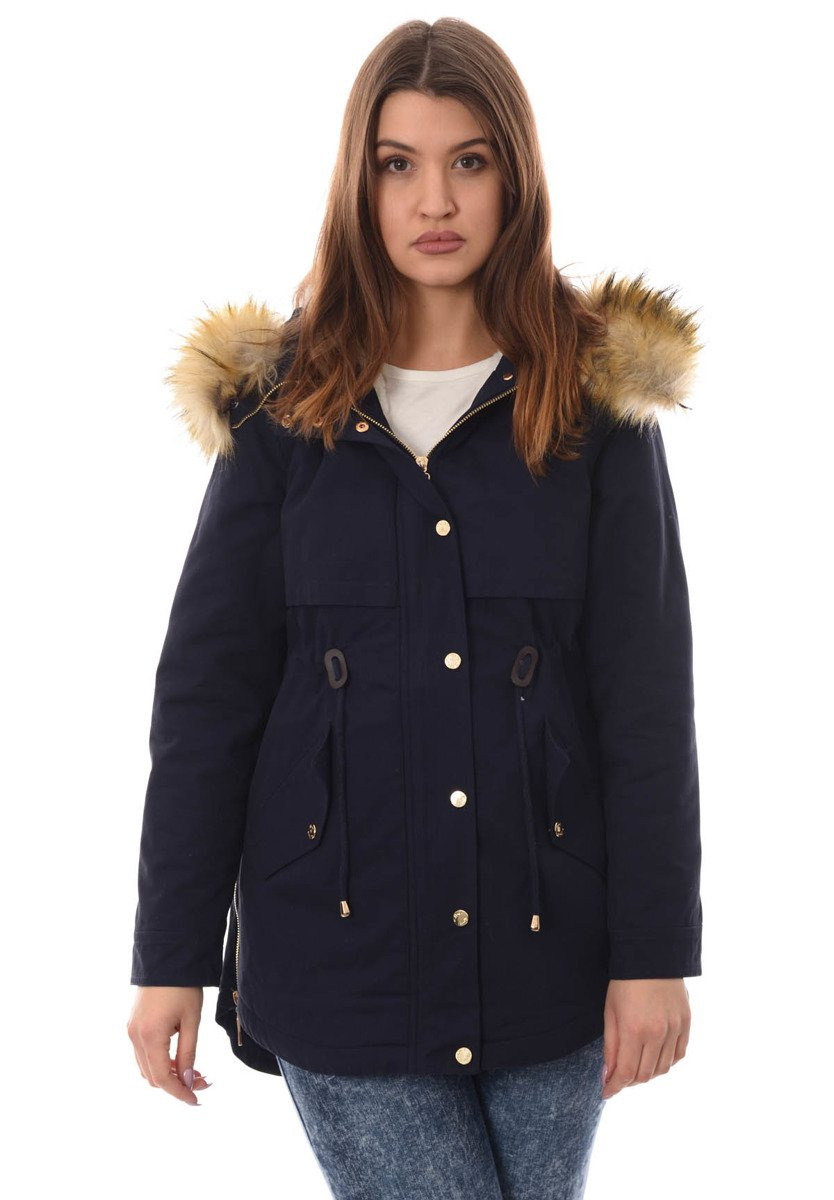Rewelacyjna, najmodniejsza w tym sezonie zimowa kurtka parka w kolorze granatowym. Zapinana na suwak oraz napy. Rękawy kurtki są ocieplane wykończone materiałem. Kurtka w środku ocieplona jest futerkiem. Ściągacz w pasie pozwala na dowolne dopasowanie kurtki do sylwetki. Kurtka posiada dwie kieszenie z przodu zapinane na napy. Kaptur kurtki jest nieodpinany. Futerko przy kapturze jest odpinane. Kurtka na dole posiada zaszewki zasuwane na suwak, które po odsunięciu poszerzają kurtkę o ok. 10 cm w obwodzie na dole. Kurtka w mankietach posiada zaszewki zasuwane na suwaki. Elementy ozdobne w kurtce są w kolorze złotym. Kurtka parka wykonana jest z materiałów najwyższej jakości. Materiał: 100% Bawełna.