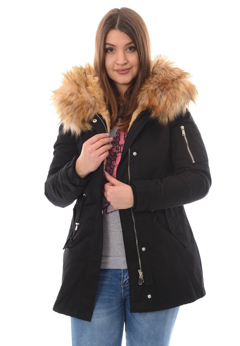 Opinie o Piękna Damska Kurtka Parka 2w1 Emilia Czarna z Brązowym Futerkiem