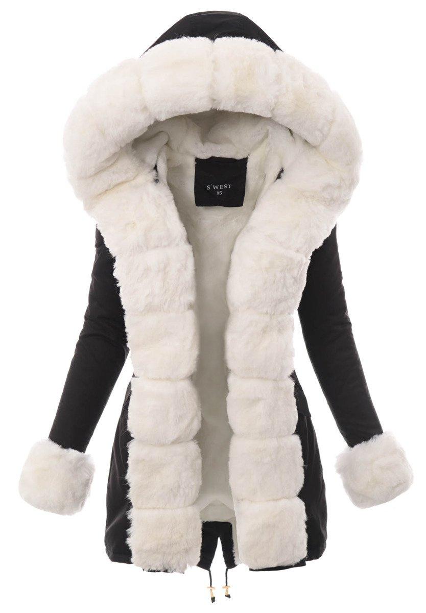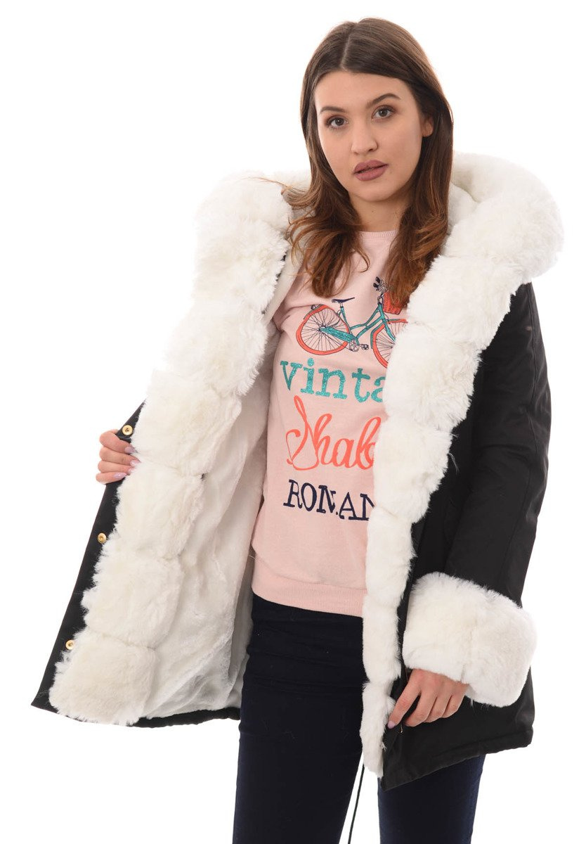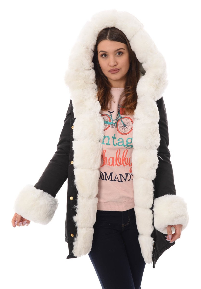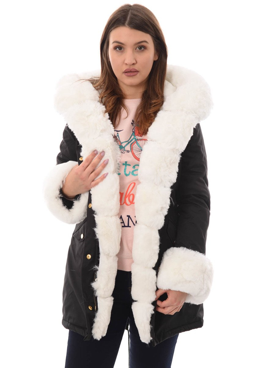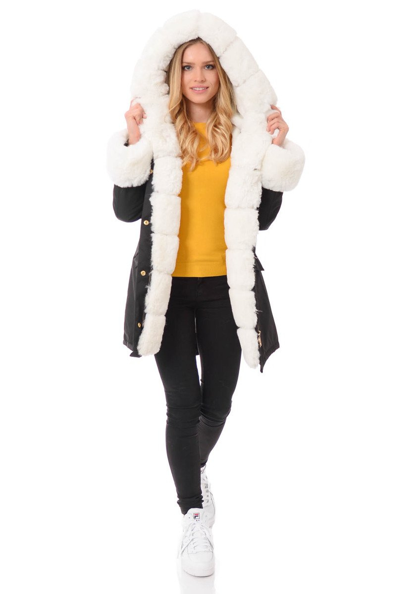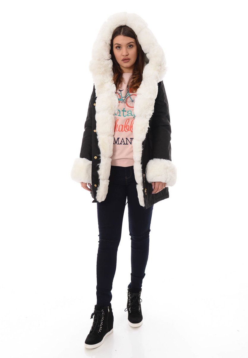 Opinie o Damska Kurtka Parka Zimowa Patrycja Czarna Z Białym Futrem