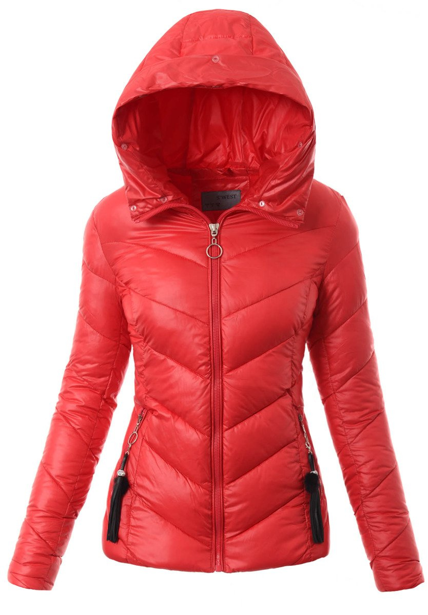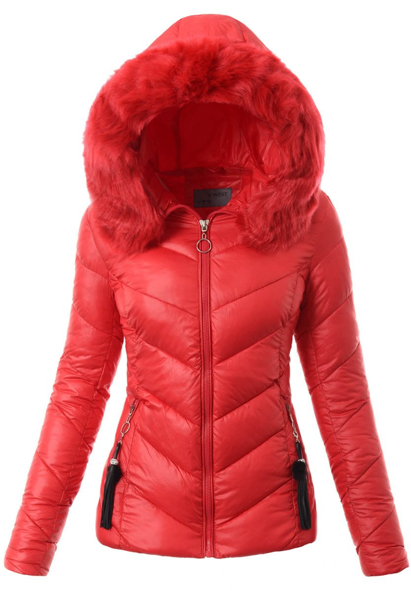 Rewelacyjna kurtka damska w kolorze czerwonym. Wypełnienie kurtki zapewnia ciepło w mroźne dni. Kurtka w środku wykończona jest podszewką. Rękawy kurtki są ocieplane, wykończone podszewką. Kurtka zasuwana jest na suwak. Kurtka posiada z przodu dwie kieszenie zasuwane na suwaki, a przy nich odpinane ozdoby. Nieodpinany kaptur zapewnia ciepło w wietrzne zimowe dni. Futerko przy kapturze jest odpinane (na guziki). Kurtka posiada wysoką stójkę. Kurtka wykonana jest z materiałów najwyższej jakości. Kurtka ocieplona jest bardzo wysokiej jakości wypełnieniem syntetycznym, które zapewnia doskonałą termoizolację oraz wysoki komfort użytkowania. Model taliowany idealnie podkreślający damską sylwetkę.