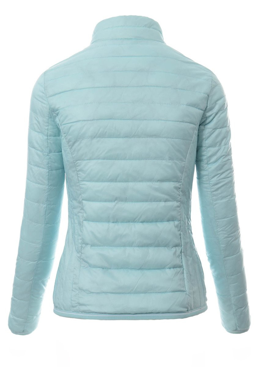 Rewelacyjna damska wiosenna kurtka w kolorze mietowym. Kurtka zasuwana jest na suwak. Modne pikowania kurtki nadają jej kobiecości. Kurtka posiada dwie kieszenie na dole. Kurtka posiada stójkę. Dół kurtki oraz mankiety wykończone są lamówką z delikatnym ściągaczem. Kurtka jest delikatnie taliowana, dzięki czemu idealnie dopasowuję się do sylwetki. Ortalionowa kurteczka idealnie sprawdzi się jako przejściowa kurtka na wiosnę oraz jesień, jak również na chłodne letnie wieczory. Kurtka wykonana z materiałów najwyższej jakości. Kurtka delikatnie ocieplona jest bardzo wysokiej jakości wypełnieniem syntetycznym, które zapewnia doskonałą termoizolację oraz wysoki komfort użytkowania. Materiał wierzchni: 100% Nylon