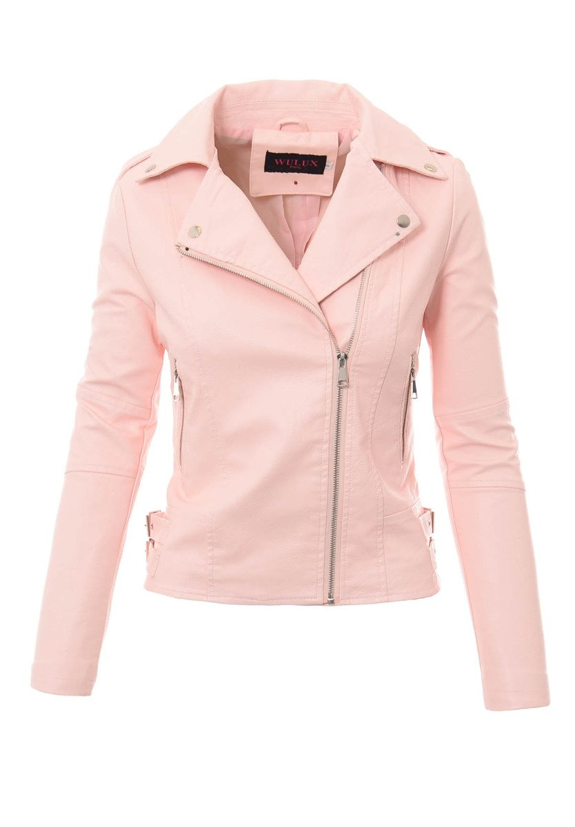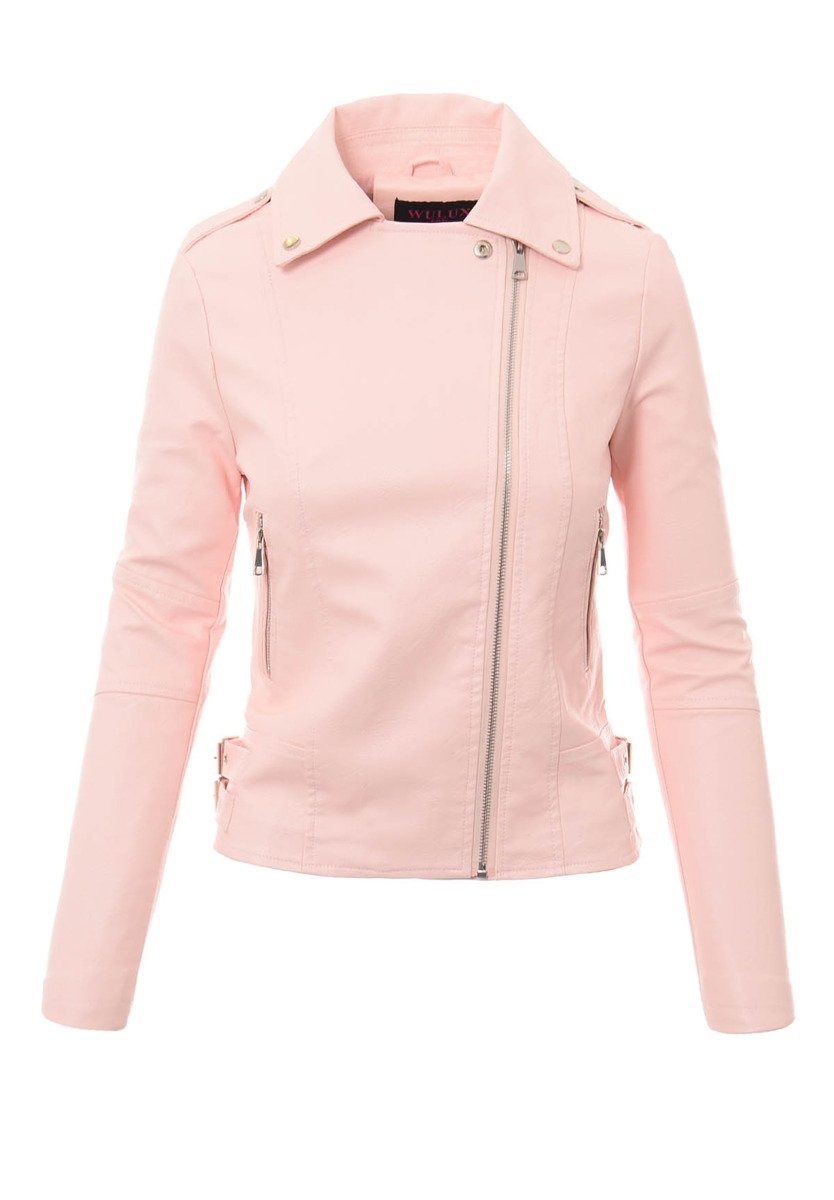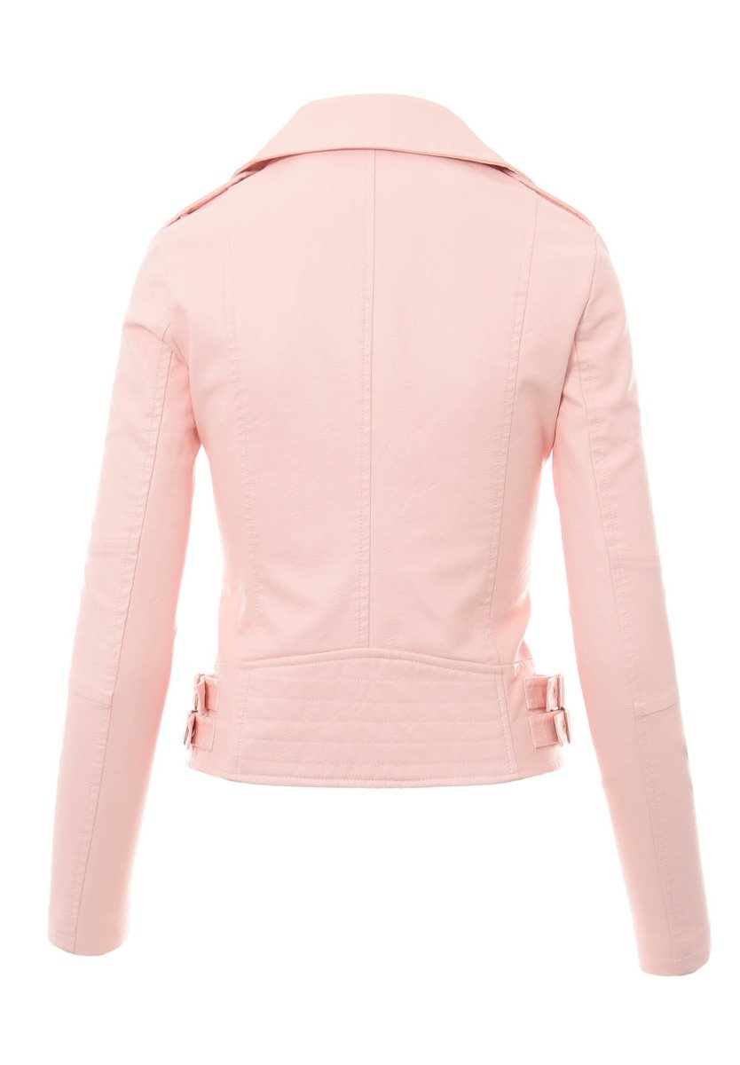 Najmodniejsza w tym sezonie damska kurtka ramoneska w kolorze różowym zapinana na suwak. Podwójny kołnierz ozdobiony napami dodaje kurtce uroku. Ramoneska posiada dwie kieszenie na dole zasuwane na suwaki. Suwaki i napy ramoneski w kolorze srebrnym. Taliowany krój kurtki idealnie podkreśla kobiecą sylwetkę. Pagony na ramionach zapinane na napy. Ramoneska idealnie sprawdzi się w wielu wiosennych oraz jesiennych stylizacjach. Kurtka wykonana jest z wysokogatunkowej eko skóry.