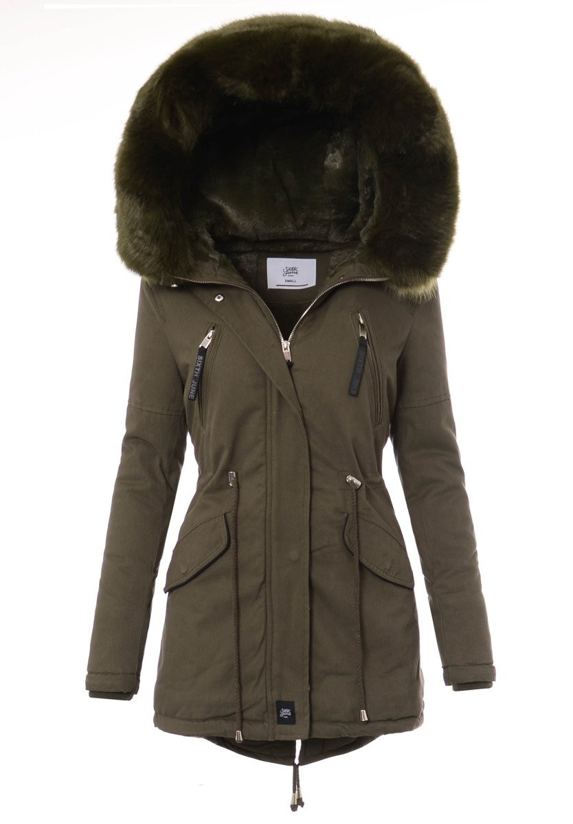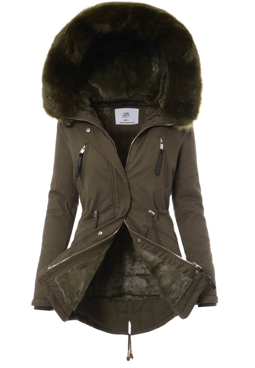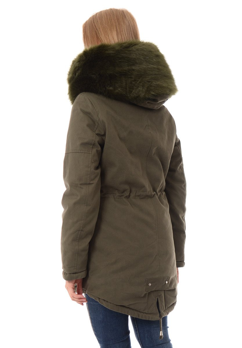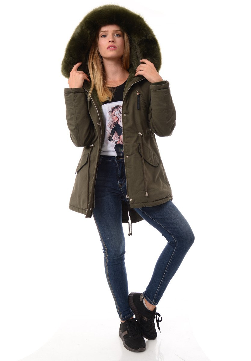 Rewelacyjna, najmodniejsza w tym sezonie zimowa kurtka parka w kolorze zielonym z pięknym futrem w kolorze zielonym. Parka zapinana jest na suwak oraz napy. Kurtka ocieplana jest przyjemnym futerkiem na całej długości oraz w kapturze. Rękawy kurtki są ocieplone, wykończone podszewką. Futerko przy kapturze kurtki jest odpinane. Nieodpinany kaptur zapewni ciepło w mroźne i wietrzne dni. Ściągacz w pasie i na dole pozwala na dowolne dopasowanie kurtki do sylwetki. Kurtka posiada dwie kieszenie z przodu na dole zapinane na napy, oraz dwie atrapy kieszeni na piersiach zasuwane na suwaki. Suwaki w kurtce są w kolorze srebrnym. Tył kurtki jest dłuższy o ok. 10 cm od jej przodu. Kurtka w mankietach posiada bawełniane ściągacze. Kurtka wykonana jest z materiałów najwyższej jakości. Materiał: 100% Bawełna.