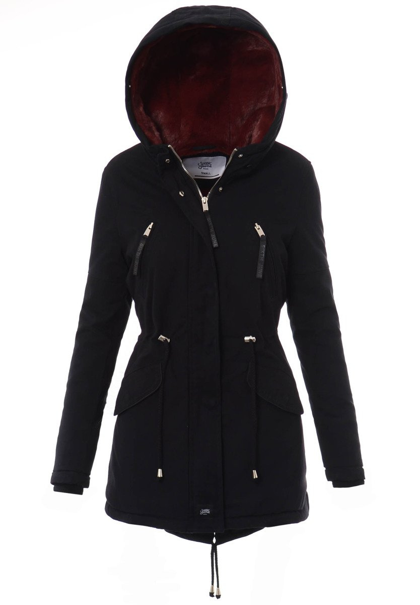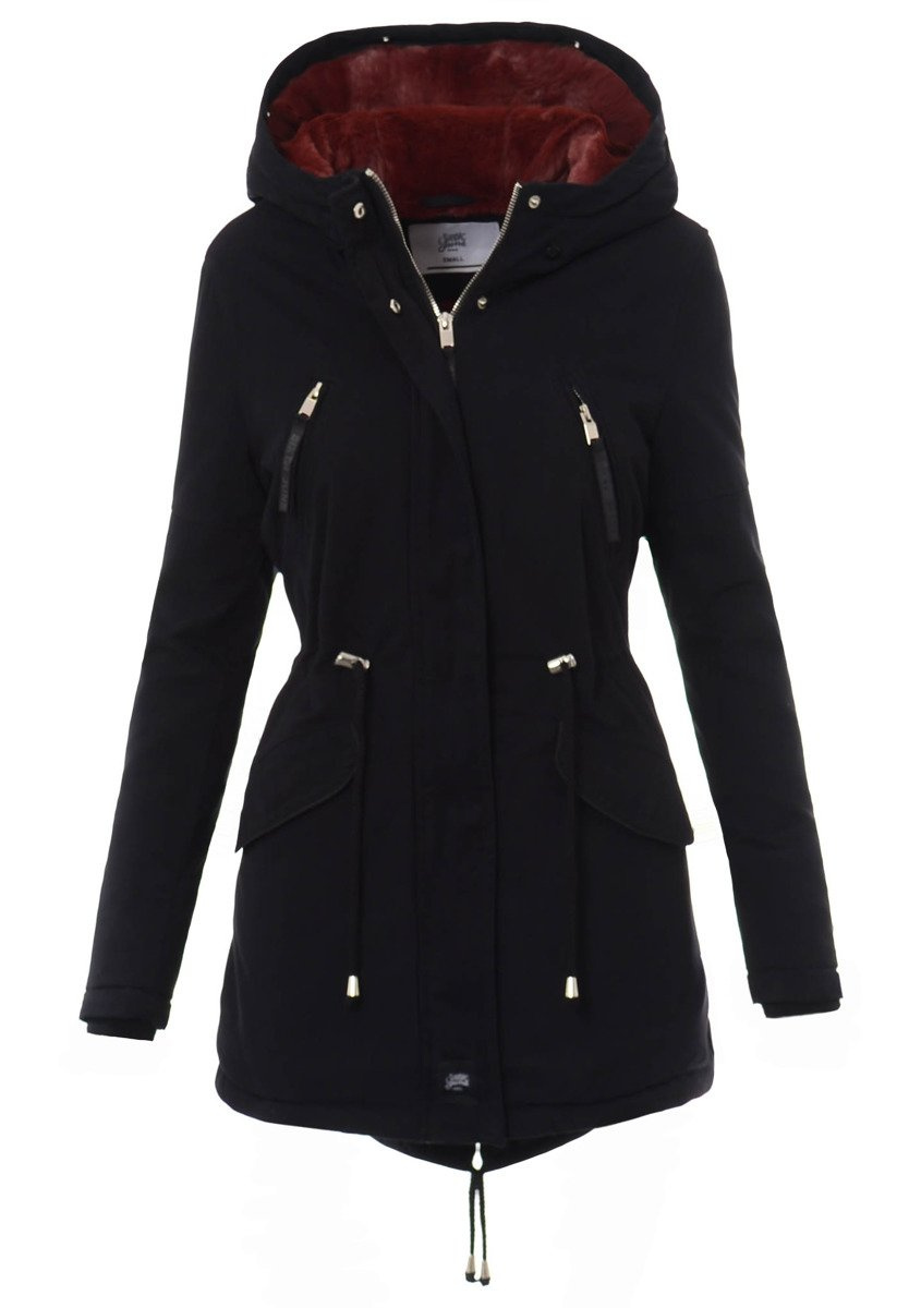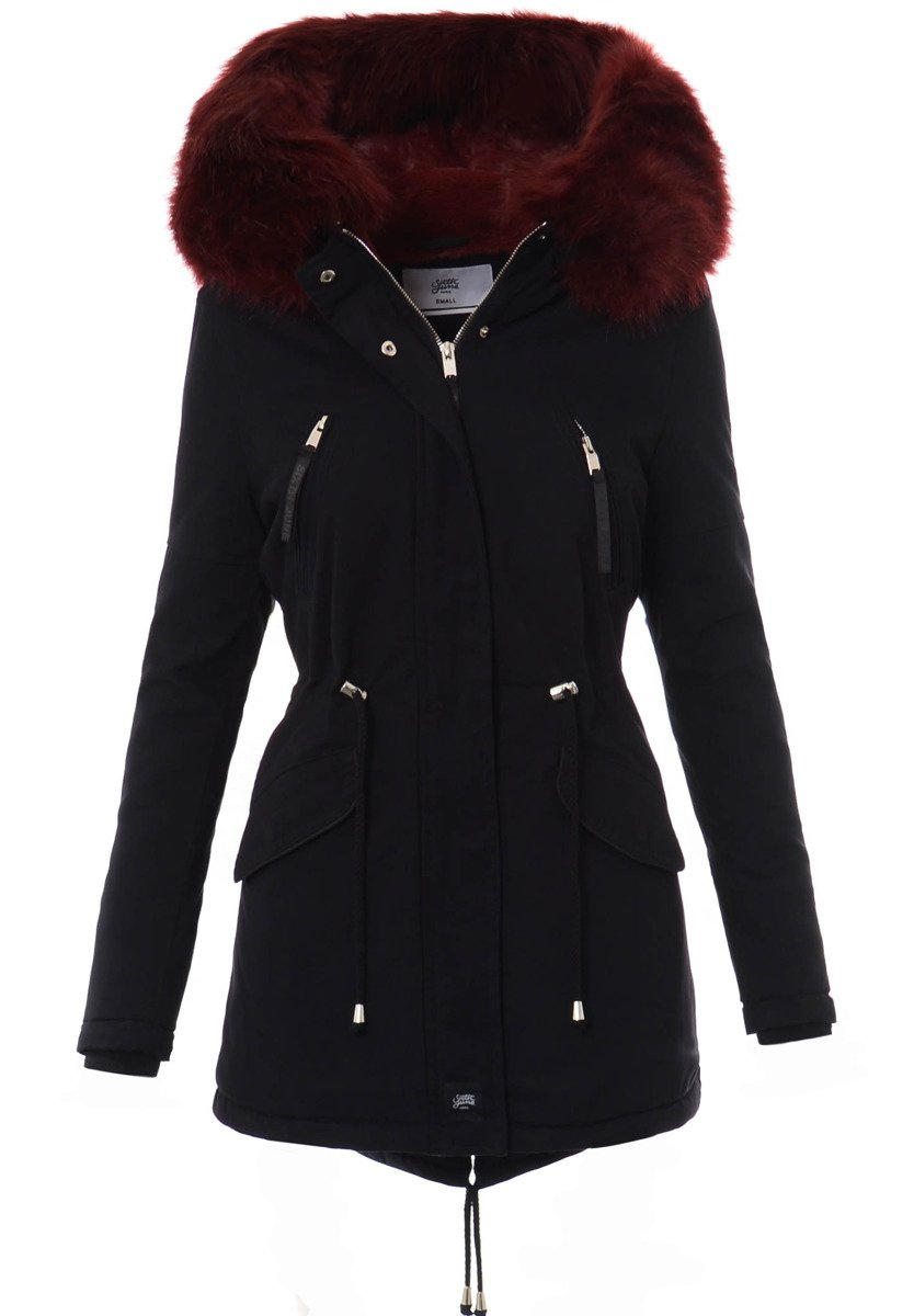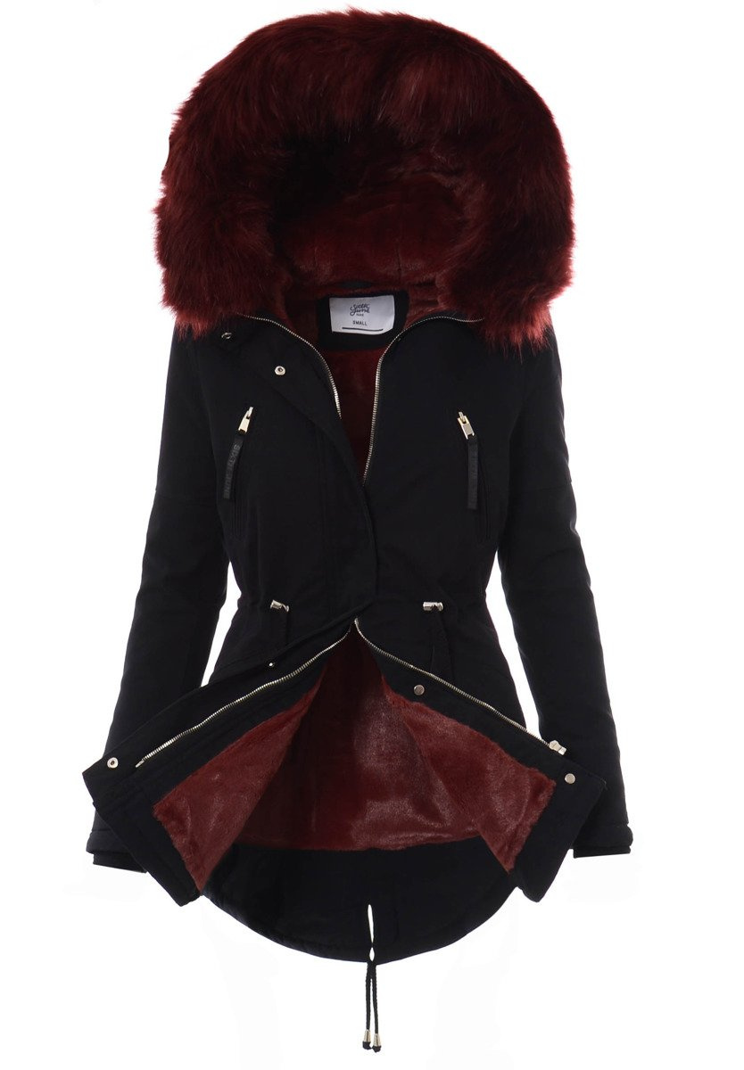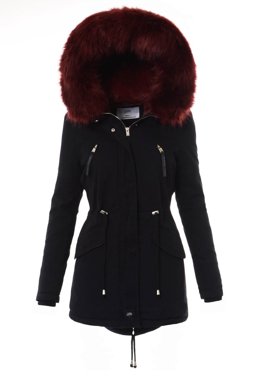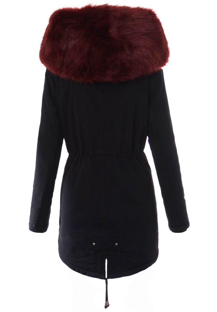 Kurtka Parka Aleksandra Czarna Z Bordowym Futrem
