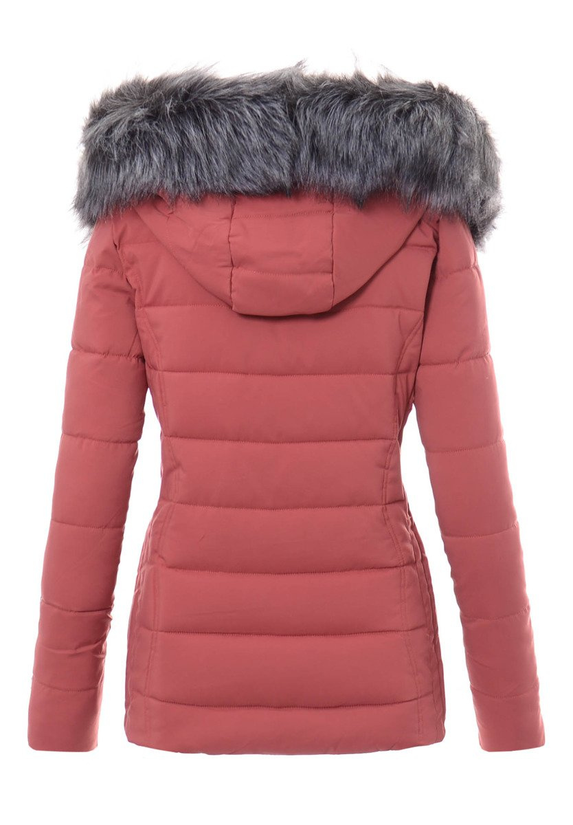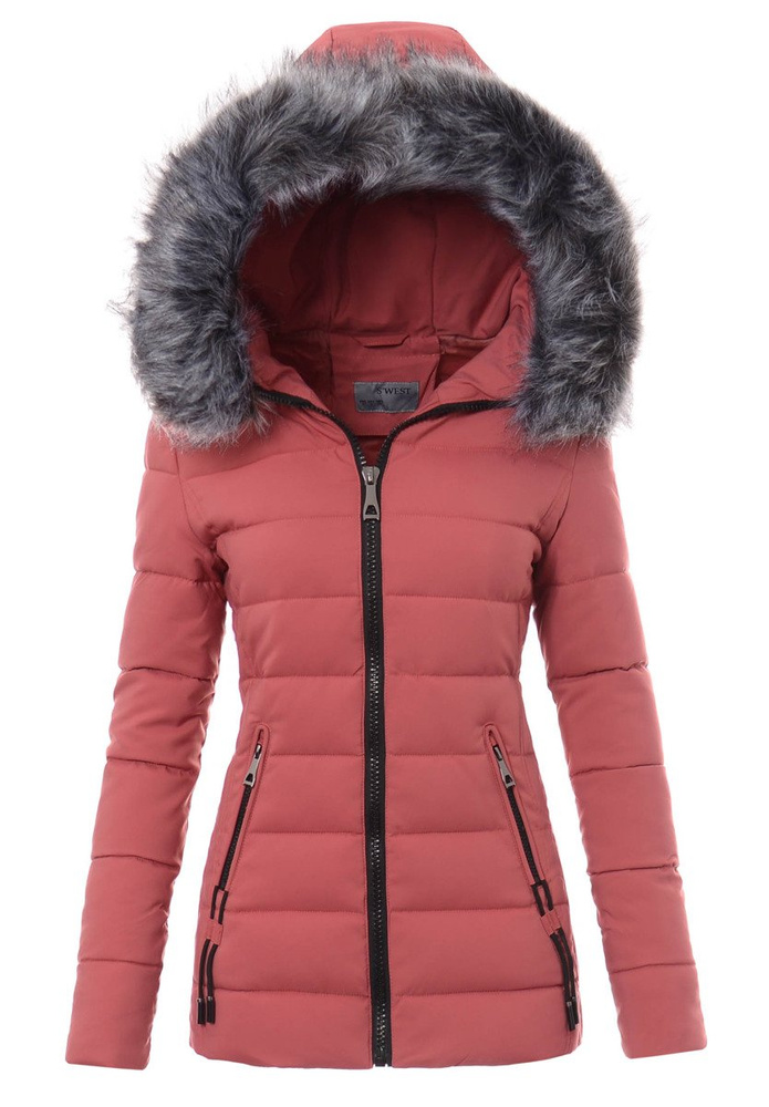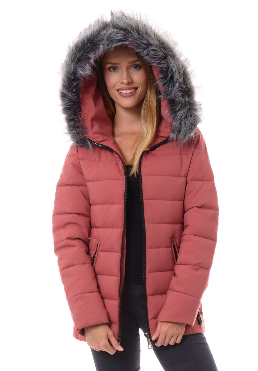 Najmodniejsza w tym sezonie kurtka damska w kolorze malinowego różu. Wypełnienie kurtki zapewnia ciepło w mroźne dni. Kurtka zapinana jest na suwak. Kurtka posiada z przodu dwie kieszenie zasuwane na suwak. Nieodpinany kaptur ze ściągaczem z odpinanym futerkiem zapewnia ciepło w wietrzne zimowe dni. Kurtka ma bawełniane ściągacze w mankietach. Ozdobne sznurki przy kieszeniach kurtki dodają jej uroku. Kurtka wykonana jest z materiałów najwyższej jakości.