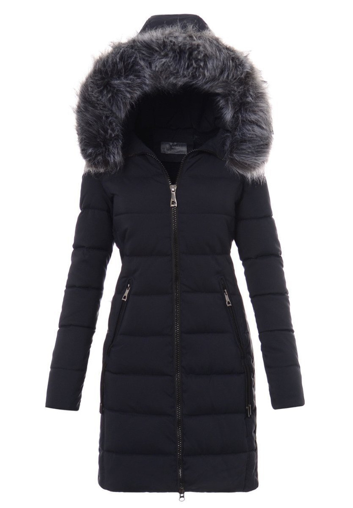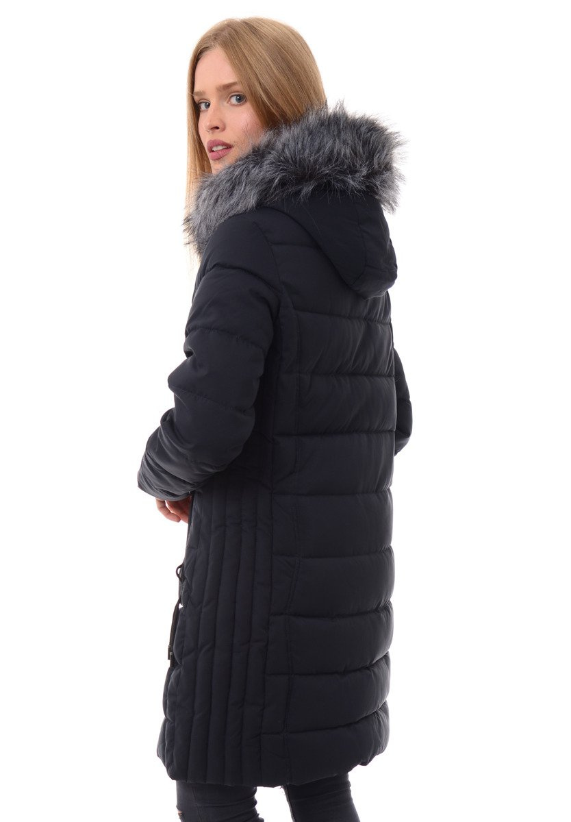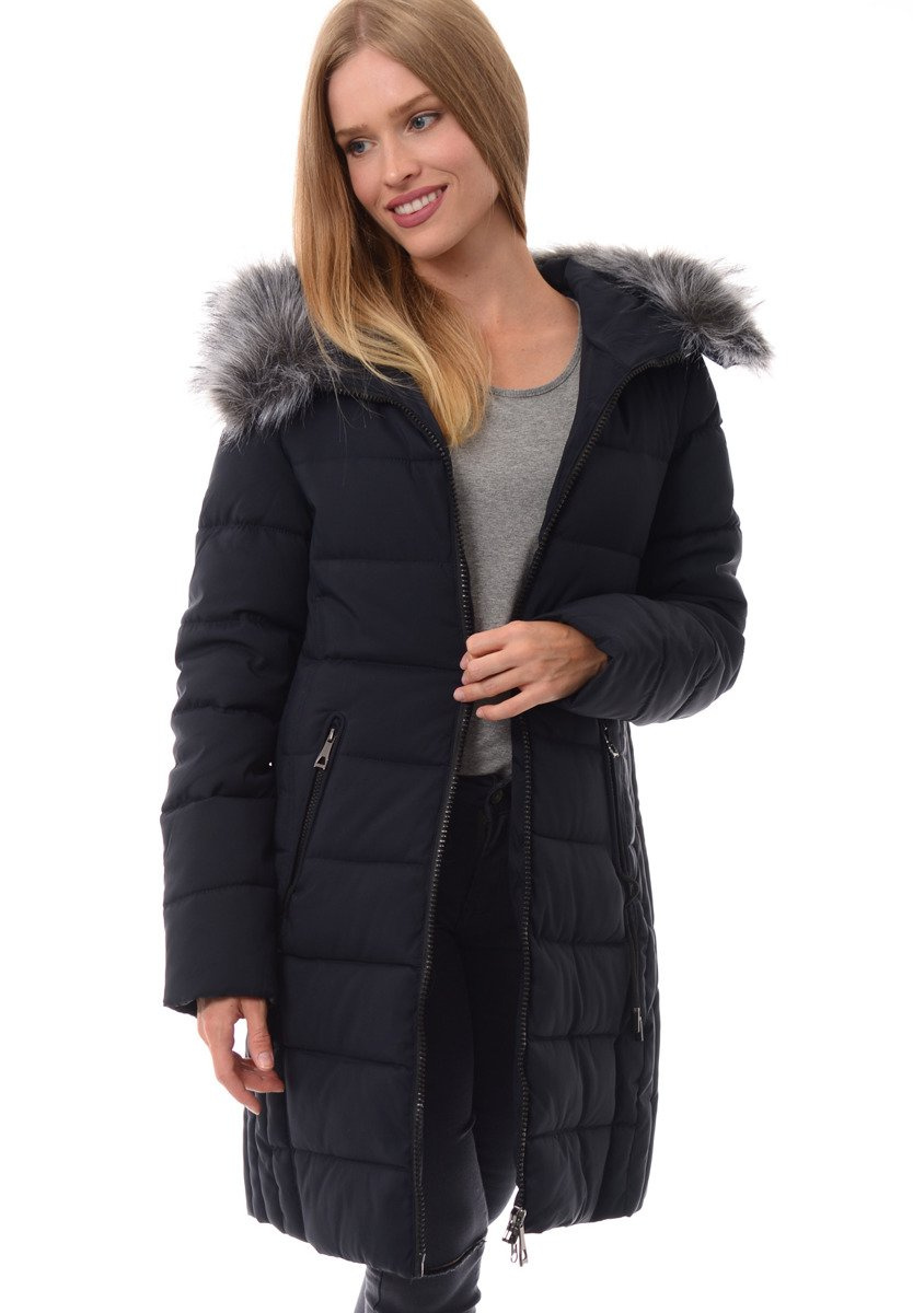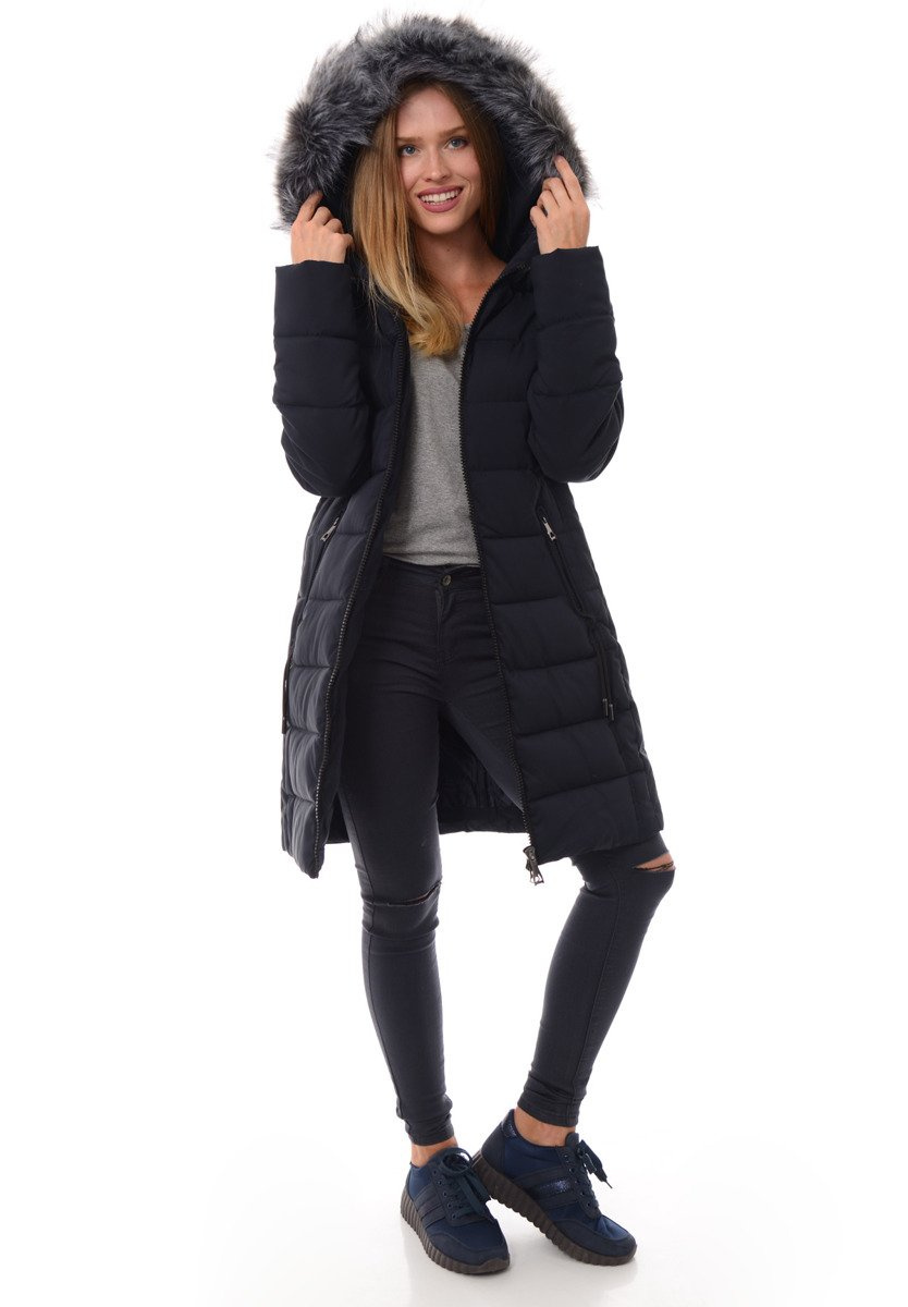 Najmodniejsza w tym sezonie kurtka damska w kolorze ciemnego granatu. Wypełnienie kurtki zapewnia ciepło w mroźne dni. Dodatkowo kurtka na wysokości tułowia w środku ocieplona jest futerkiem. Kurtka zapinana jest na podwójny suwak. Kurtka posiada z przodu dwie kieszenie zasuwane na suwak. Nieodpinany ściągaczem z odpinanym futerkiem zapewnia ciepło w wietrzne zimowe dni. Kurtka ma bawełniane ściągacze w mankietach. Ozdobne sznurki przy kieszeniach kurtki dodają jej uroku. Kurtka wykonana jest z materiałów najwyższej jakości.