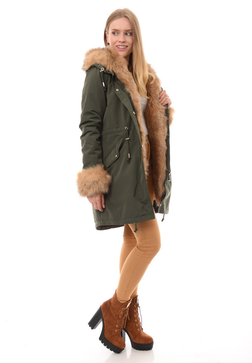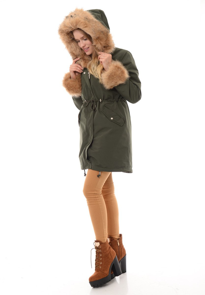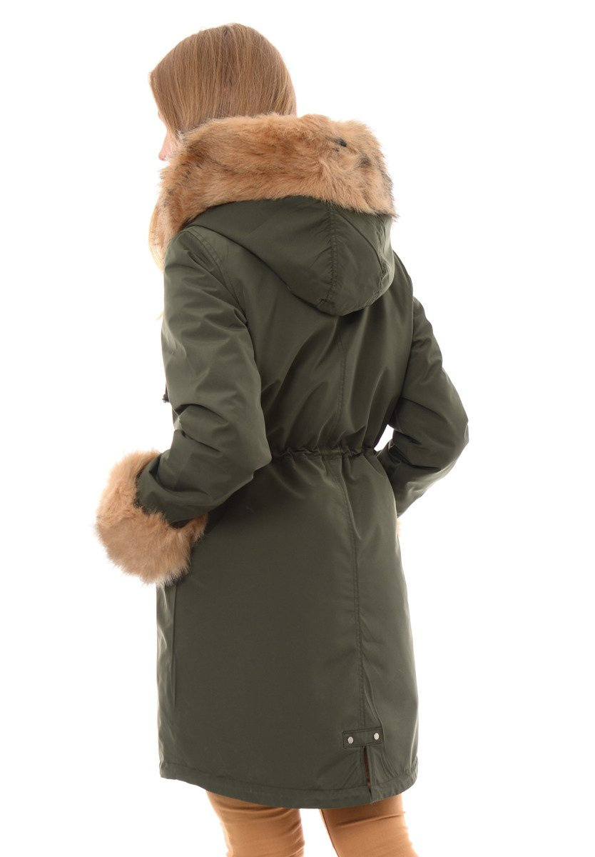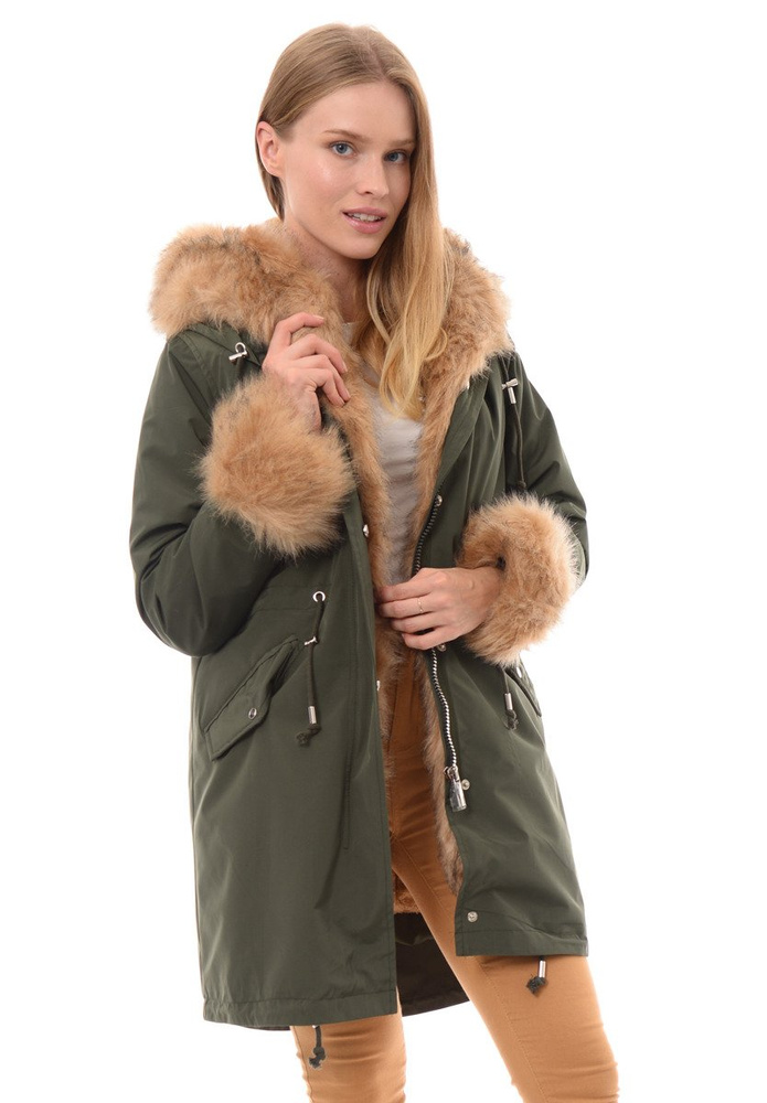 Kurtka Parka 2w1 Zielona Z Brązowym Futerkiem