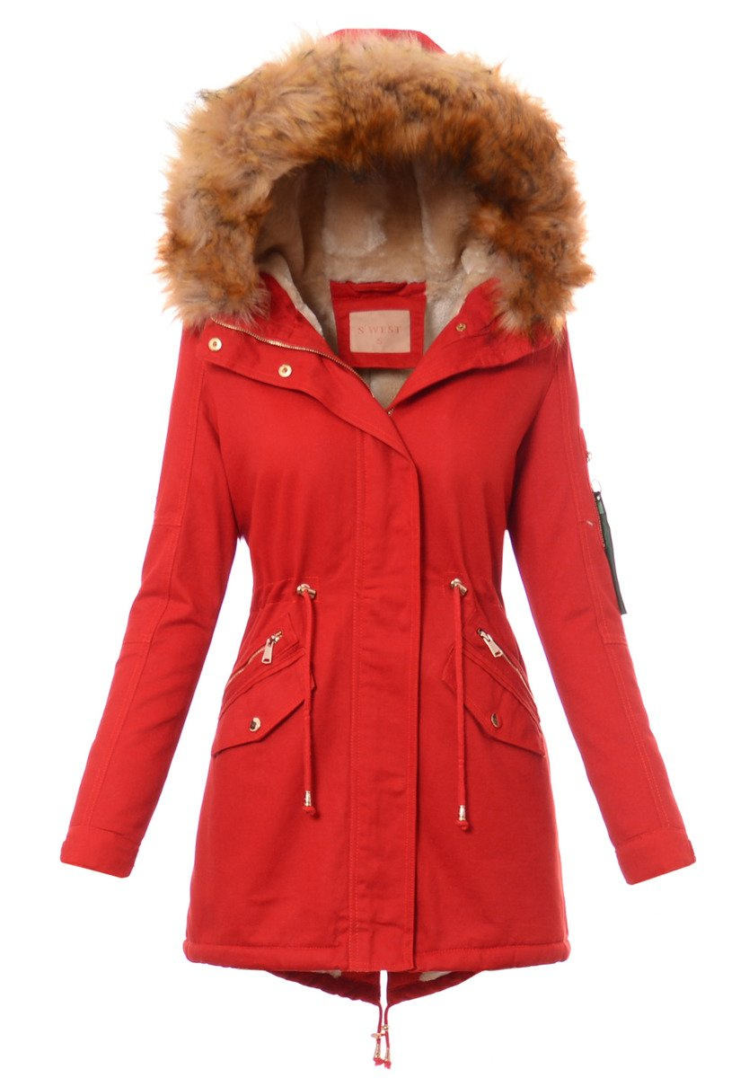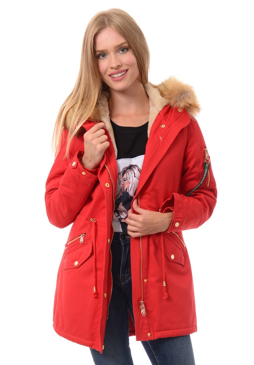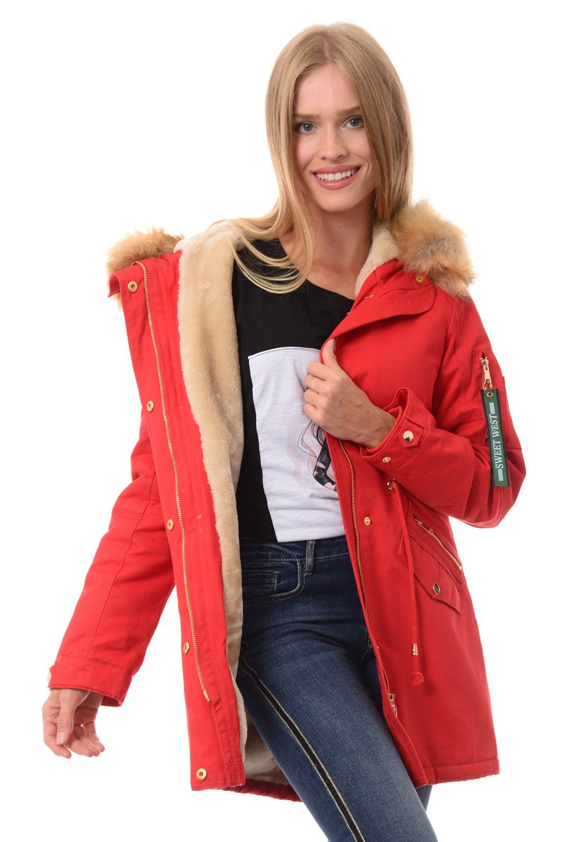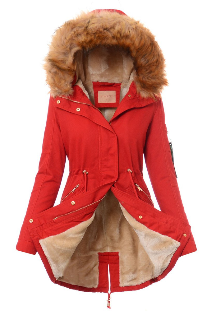 Rewelacyjna, najmodniejsza w tym sezonie zimowa kurtka parka w kolorze malinowym. Parka zapinana jest na suwak oraz napy. Kurtka ocieplana jest przyjemnym futerkiem na całej długości oraz w kapturze, rękawy kurtki są ocieplone, wykończone podszewką. Futerko przy kapturze kurtki jest odpinane. Nieodpinany kaptur zapewni ciepło w mroźne i wietrzne dni. Ściągacz w pasie oraz na dole na troczki pozwala na dowolne dopasowanie kurtki do sylwetki. Kurtka posiada dwie kieszenie na dole zapinane na napy, a nad nimi ozdobne suwaki. Kieszeń na lewym ramieniu zasuwana jest na suwak. (zawieszka przy suwaku jest odpinana) Kurtka w mankietach posiada bawełniane ściągacze oraz regulację napami. Napy oraz suwak w kurtce są w kolorze złotym. Tył kurtki jest dłuższy o ok. 8 cm od jej przodu. Kurtka w mankietach posiada gumkę ściągającą, oraz regulację mankietów guzikami. Kurtka wykonana jest z materiałów najwyższej jakości. Materiał: 100% Bawełna.