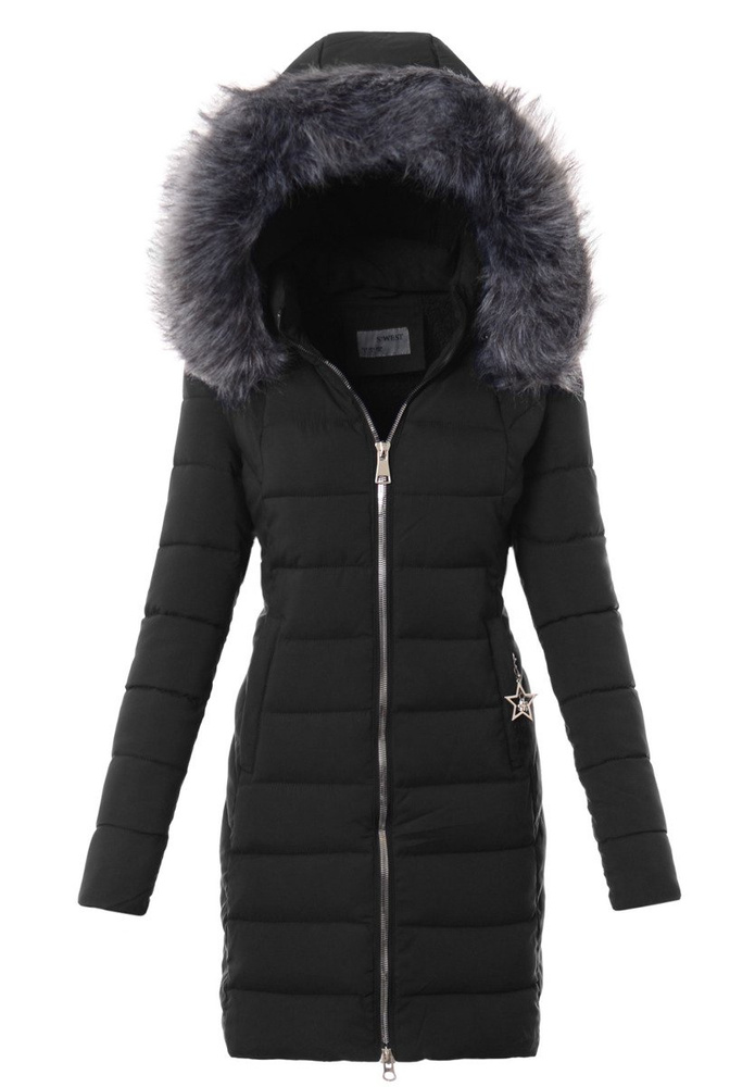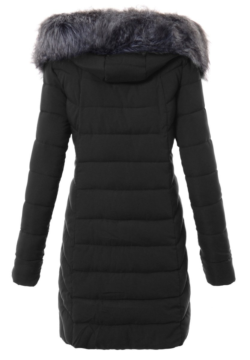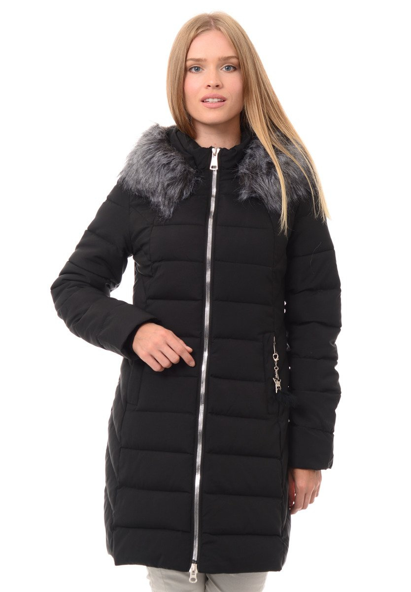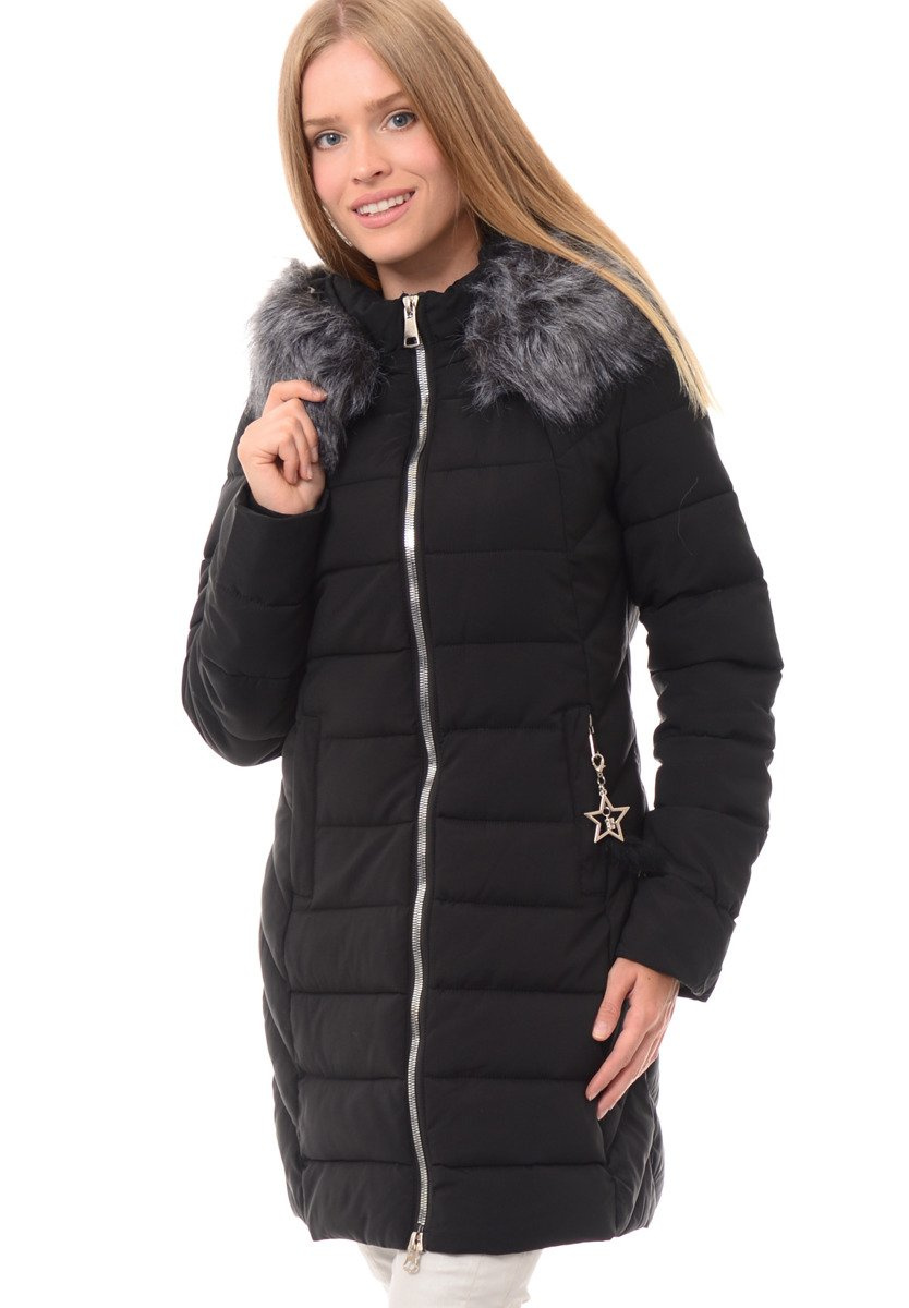 Rewelacyjna kurtka damska w kolorze czarnym. Wypełnienie kurtki zapewnia ciepło w mroźne dni. Kurtka na wysokości tułowia w środku wykończona jest przyjemnym futerkiem. Rękawy kurtki są ocieplane, wykończone podszewką. Kurtka zasuwana jest na podwójny suwak. Kurtka posiada z przodu dwie kieszenie zasuwane na suwaki. Ozdoba przy kieszeni jest odpinana. Odpinany kaptur zapewnia ciepło w wietrzne zimowe dni. Futerko przy kapturze jest odpinane. Ściągacz w mankietach kurtki. Elementy ozdobne w kurtce są w kolorze srebrnym. Tył kurtki dłuższy o ok. 4cm. Kurtka wykonana jest z materiałów najwyższej jakości. Kurtka ocieplona jest bardzo wysokiej jakości wypełnieniem syntetycznym, które zapewnia doskonałą termoizolację oraz wysoki komfort użytkowania. Model taliowany idealnie podkreślający damską sylwetkę.