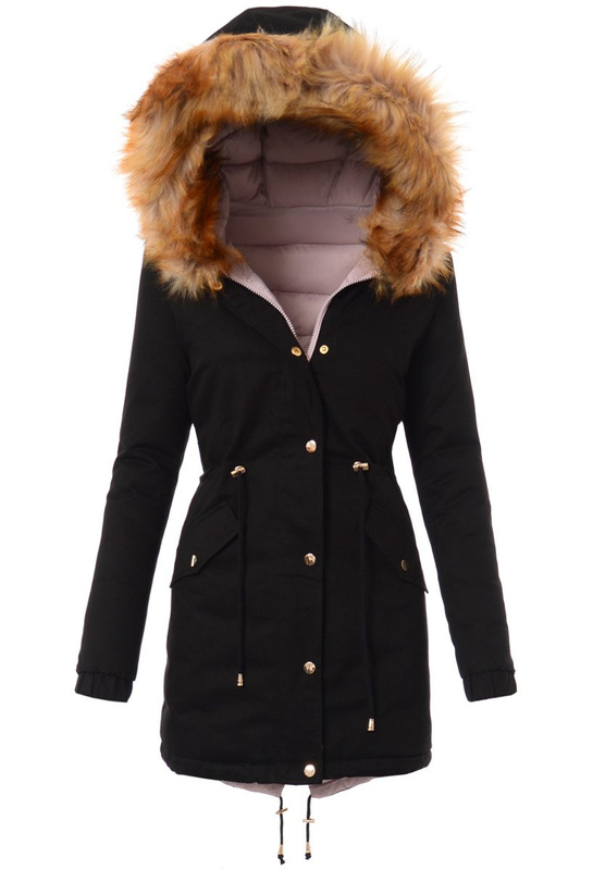 Rewelacyjna dwustronna kurtka damska w kolorze czarnym/różowym. Wypełnienie kurtki zapewnia ciepło w mroźne dni. Kurtka zapinana na suwak i napy. Kurtka posiada z przodu dwie kieszenie zapinane na napy. Nieodpinany kaptur zapewnia ciepło w wietrzne zimowe dni. Futerko przy kapturze kurtki jest odpinane. Suwaki i ozdoby kurtki w kolorze złotym. Ściągacz w pasie i na dole pozwala na lepsze dopasowanie kurtki do sylwetki. Kurtka wykonana jest z materiałów najwyższej jakości. Kurtka ocieplona jest bardzo wysokiej jakości wypełnieniem syntetycznym, które zapewnia doskonałą termoizolację oraz wysoki komfort użytkowania.