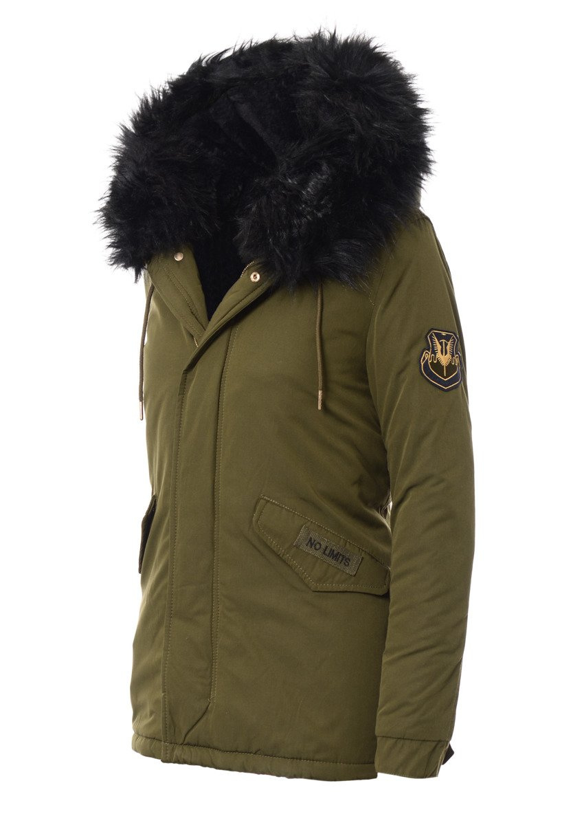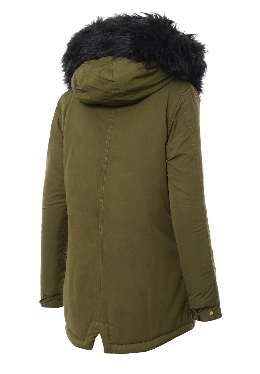 Rewelacyjna kurtka damska typu parka w kolorze zielonym z czarnym futerkiem. Wypełnienie kurtki zapewnia ciepło w mroźne dni. Kurtka zapinana na suwak i napy. Od wewnątrz na wysokości tułowia oraz w kapturze ocieplona dodatkowo futerkiem w kolorze czarnym. Kurtka posiada z przodu dwie kieszenie zapinane na napy. Dodatkowa kieszeń wewnętrzna np. na telefon. Nieodpinany kaptur ze ściągaczem zapewnia ciepło w wietrzne zimowe dni. Futerko przy kapturze kurtki jest odpinane. Suwaki i ozdoby kurtki w kolorze złotym. Ściągacz na dole chroni przed zimnem. Kurtka wykonana jest z materiałów najwyższej jakości. Kurtka ocieplona jest bardzo wysokiej jakości wypełnieniem syntetycznym, które zapewnia doskonałą termoizolację oraz wysoki komfort użytkowania. Tył kurtki jest dłuższy od przodu o około 7 cm. Mankiety regulowane na napy (pasek na gumce). Na lewej kieszeni i lewym rękawie naszywki.