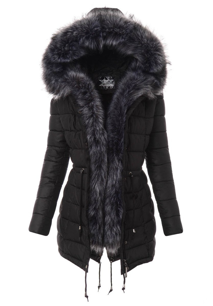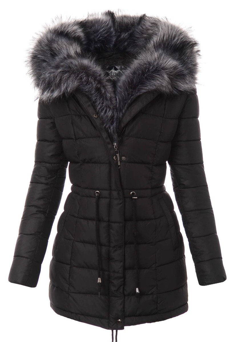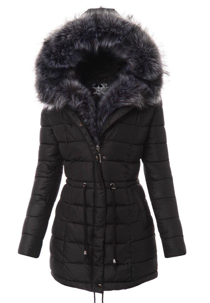 Zimowa kurtka parka w kolorze czarnym z pięknym futerkiem. Kurtka ocieplona jest wysokiej jakości wypełnieniem syntetycznym, które zapewnia doskonałą termoizolację oraz wysoki komfort użytkowania. Model delikatnie taliowany idealnie podkreślający damską sylwetkę. Ściągacz w pasie oraz na dole pozwala na dowolne dopasowanie kurtki do sylwetki. Kurtka posiada dwie kieszenie z przodu na dole zapinane na napy. Parka zapinana jest na napy oraz suwak. Kaptur kurtki jest nieodpinany. Kurtka posiada odpinane futerko przy kapturze i wzdłuż suwaka. Tył dłuższy o około 9 cm. Kurtka wykonana jest z materiałów najwyższej jakości. Materiał: 100% Poliester.