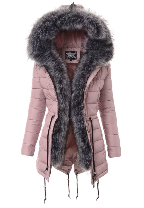 Zimowa kurtka parka w kolorze różowym z pięknym futerkiem. Kurtka ocieplona jest wysokiej jakości wypełnieniem syntetycznym, które zapewnia doskonałą termoizolację oraz wysoki komfort użytkowania. Model delikatnie taliowany idealnie podkreślający damską sylwetkę. Ściągacz w pasie oraz na dole pozwala na dowolne dopasowanie kurtki do sylwetki. Kurtka posiada dwie kieszenie z przodu na dole zapinane na napy. Parka zapinana jest na napy oraz suwak. Kaptur kurtki jest nieodpinany. Kurtka posiada odpinane futerko przy kapturze i wzdłuż suwaka. Tył dłuższy o około 9 cm. Kurtka wykonana jest z materiałów najwyższej jakości. Materiał: 100% Poliester.