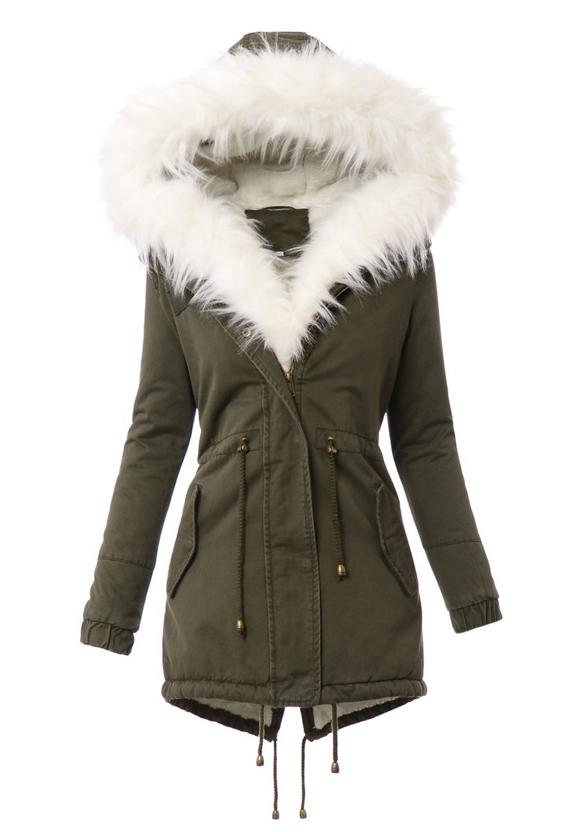 Rewelacyjna kurtka damska typu parka w kolorze zielonym z białym futerkiem. Kurtka zapinana na suwak i napy. Od wewnątrz dodatkowo ocieplona futerkiem. Kurtka posiada z przodu dwie kieszenie zapinane na napy. Nieodpinany kaptur zapewnia ciepło w wietrzne zimowe dni. Futerko przy kapturze oraz wzdłuż suwaka jest odpinane. Ściągacz na dole i w pasie pozwala na dowolne dopasowanie kurtki do sylwetki. Tył kurtki jest dłuższy od przodu o około 5 cm. Ściągacz w mankietach. Kurtka wykonana jest z materiałów najwyższej jakości. Kurtka ocieplona jest bardzo wysokiej jakości wypełnieniem syntetycznym.