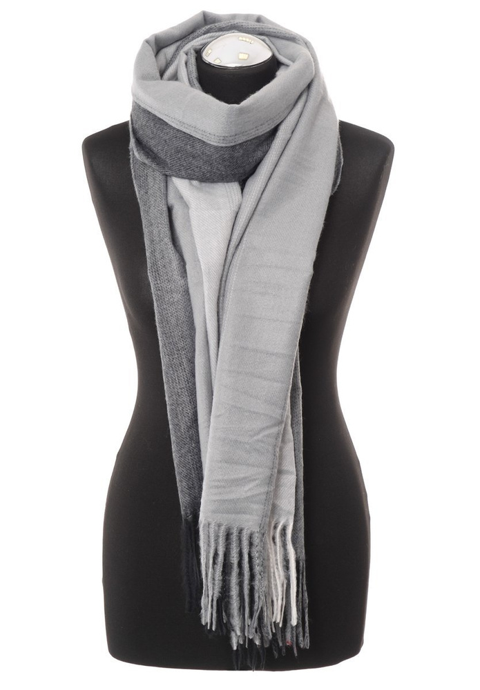 Damski duży szalik w kolorze szarym. Szal sprawdzi się idealnie do wielu stylizacji na jesienne oraz zimowe dni. Materiał: 100% Wiskoza. Wymiary ok. 68 cm x 195 cm.