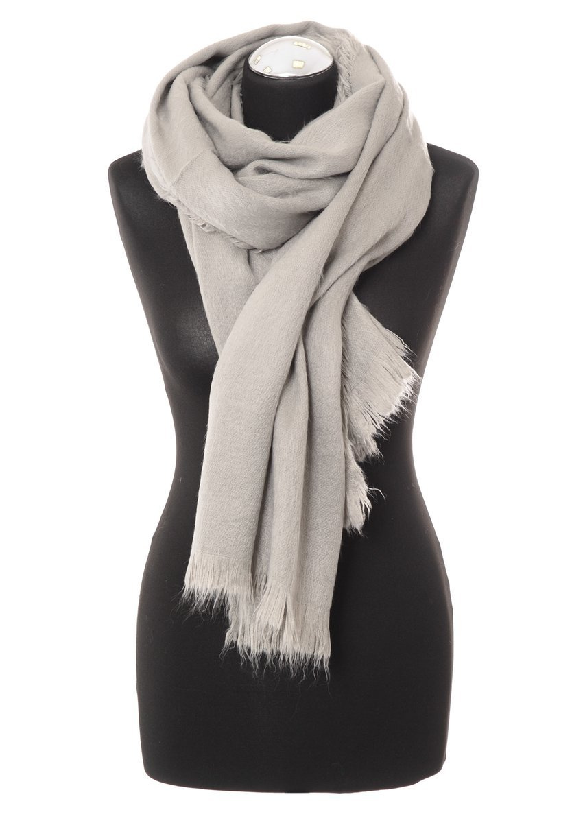 Damski duży szalik w kolorze szarym. Szal sprawdzi się idealnie do wielu stylizacji na jesienne oraz zimowe dni. Materiał: 100% Akryl. Wymiary ok. 70 cm x 198 cm.