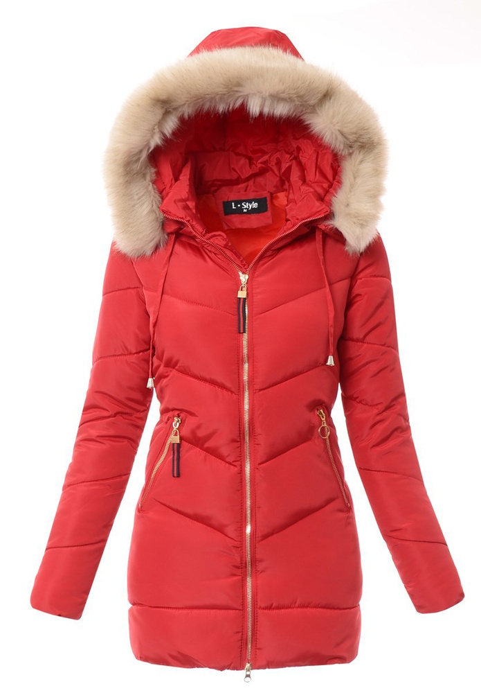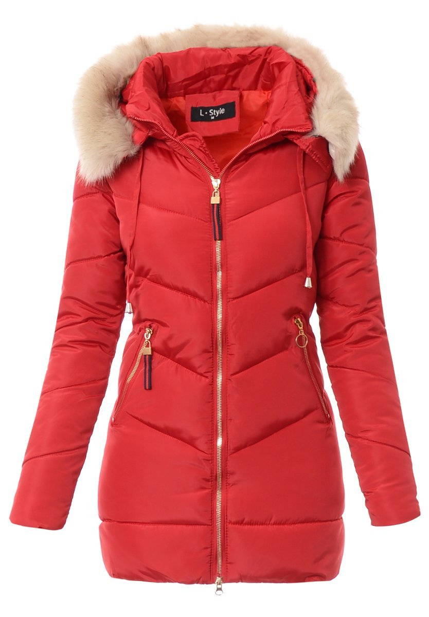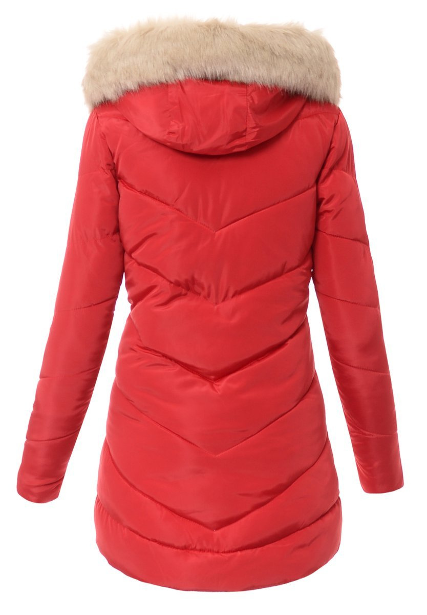 Rewelacyjna kurtka damska w kolorze czerwonym z futerkiem ecru. Wypełnienie kurtki zapewnia ciepło w mroźne dni. Kurtka zasuwana jest na podwójny suwak. Kurtka posiada z przodu dwie kieszenie zasuwane na suwaki. Odpinany kaptur zapewnia ciepło w wietrzne zimowe dni. Futerko przy kapturze jest odpinane. Suwaki w kolorze srebrnym Kurtka wykonana jest z materiałów najwyższej jakości. Kurtka ocieplona jest bardzo wysokiej jakości wypełnieniem syntetycznym, które zapewnia doskonałą termoizolację oraz wysoki komfort użytkowania. Tył kurtki dłuższy o ok 6 cm.
