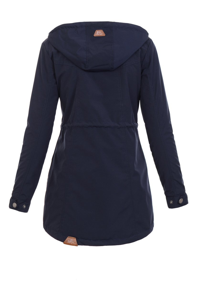 Kurtka parka o kroju płaszczyka to świetny wybór na każdą porę roku, zwłaszcza na chłodniejsze, wiosenne popołudnia. Dostępna w kolorze granatowo-różowym, dwustronna kurtka kapitalnie sprawdzi się w czasie deszczu i wietrznej pogody. Ściągacze znajdujące się na wysokości pasa pozwalają na idealne dopasowanie jej do figury, a dwie ozdobne kieszonki zapinane na suwaki, umożliwiają schowanie w nich potrzebnych rzeczy. Kaptur kurtki zapewnia ciepło także na wysokości karku oraz głowy, jest również całkowicie odpinany. Parka została uszyta z odpornego na wilgoć poliestru. Materiał: 100% Poliester.