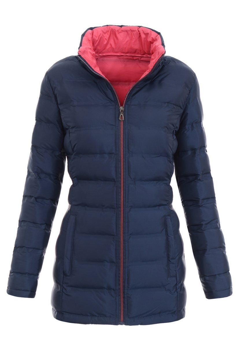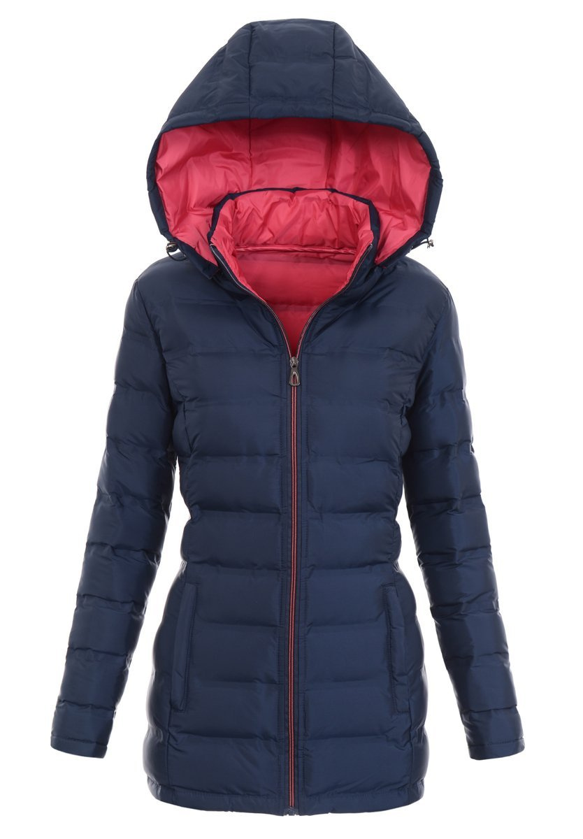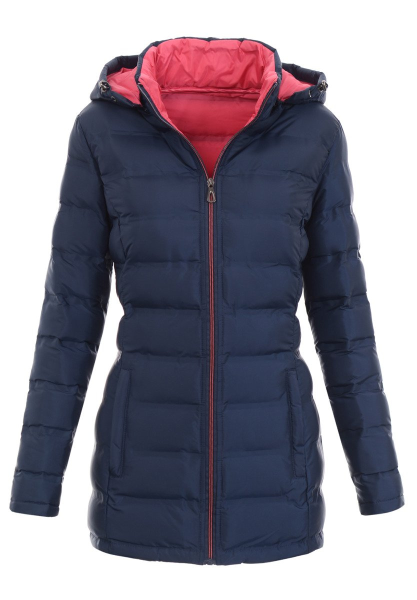 Dobranie odpowiedniej wiosennej kurtki to nie lada wyzwanie. Prezentowany model to jednak gwarancja sukcesu i doskonałego wyglądu o każdej porze roku. Ta przyciągająca uwagę żywym kolorem, granatowa kurtka, zapewnia ciepło i ochronę przed chłodem zarówno wiosną, jak i jesienią. Posiadająca komfortowe wcięcie w talii idealnie przypasowuje się do kobiecej sylwetki. Model na całej długości zapinany jest na pionowy suwak błyskawiczny, z przodu znajduje się także para kieszeni. Wewnątrz kurtka posiada podszewkę w kolorze malinowym.