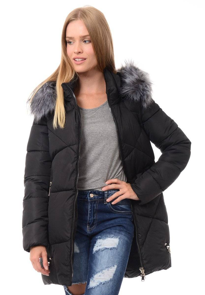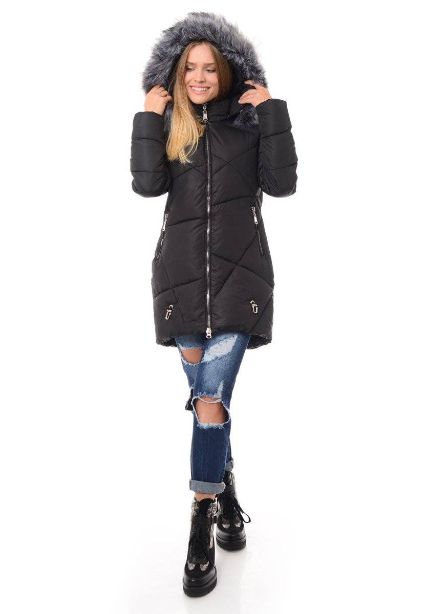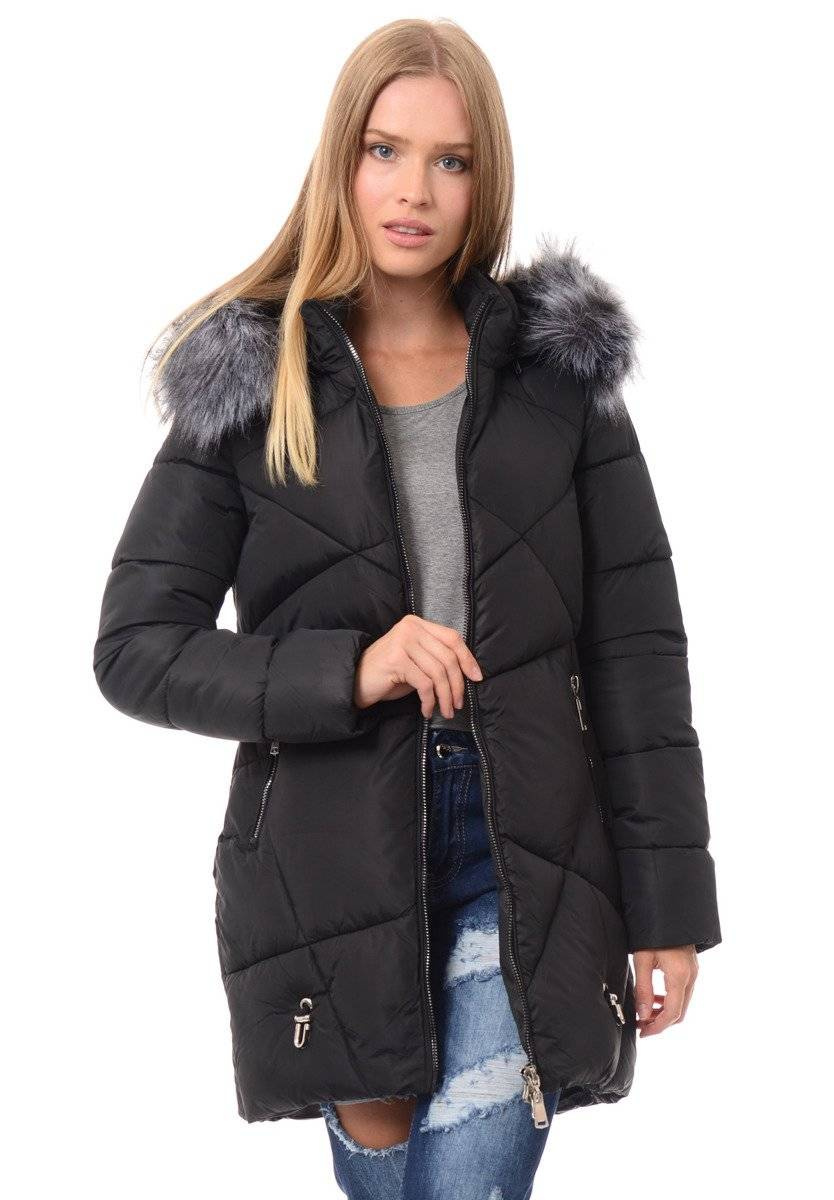 Ciepła, zimowa kurtka damska wykonana jest z wysokiej jakości nieprzemakalnego nylonu, co gwarantuje komfort noszenia nawet w najmroźniejsze dni. Kurtka sięga do połowy ud, przy czym jest o kilka centymetrów dłuższa z tyłu, doskonale podkreśla kobiecą sylwetkę. Kurtka Zimowa Judyta Czarna w najmodniejszym w tym sezonie kolorze posiada odpinany kaptur, zakończony ciepłym, miękkim, szarym futerkiem. Zapinana jest na prosty zamek błyskawiczny i posiada ocieplaną stójkę. Po bokach znajdują się dwie kieszenie.