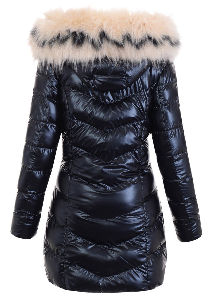 Rewelacyjna kurtka damska w kolorze granatowym. Wypełnienie kurtki zapewnia ciepło w mroźne dni. Rękawy kurtki są ocieplane, wykończone podszewką. Kurtka zasuwana jest na suwak. Kurtka posiada z przodu dwie kieszenie zasuwane na suwaki. Odpinany kaptur z odpinanym futerkiem zapewnia ciepło w wietrzne zimowe dni. Ściągacz w mankietach kurtki. Kurtka wykonana jest z materiałów najwyższej jakości. Kurtka ocieplona jest bardzo wysokiej jakości wypełnieniem syntetycznym, które zapewnia doskonałą termoizolację oraz wysoki komfort użytkowania.