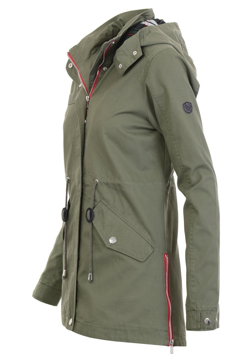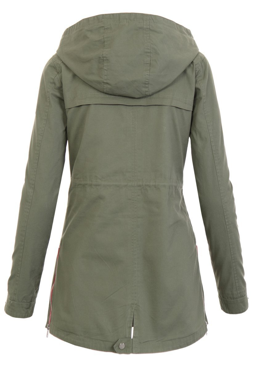 Wygodna, stylowa kurtka parka idealna na nadchodzącą wiosnę. Zapinana jest na wysokiej jakości suwak, a wszyte ściągacze pozwalają na idealne dopasowanie jej do talii. Kurtka posiada także dwie obszerne kieszenie i chroniący przed deszczem kaptur, który można odpiąć. Dzięki asymetryczności kurtki i jej dłuższemu tyłowi, sylwetka sprawia wrażenie smuklejszej i zgrabniejszej. Materiał, z którego wykonana jest kurtka to stuprocentowa bawełna najwyższej jakości, która zapewni ciepło w chłodniejsze dni.