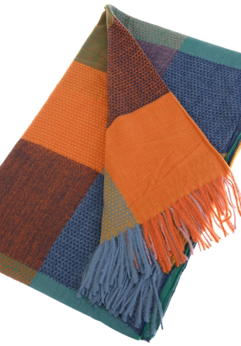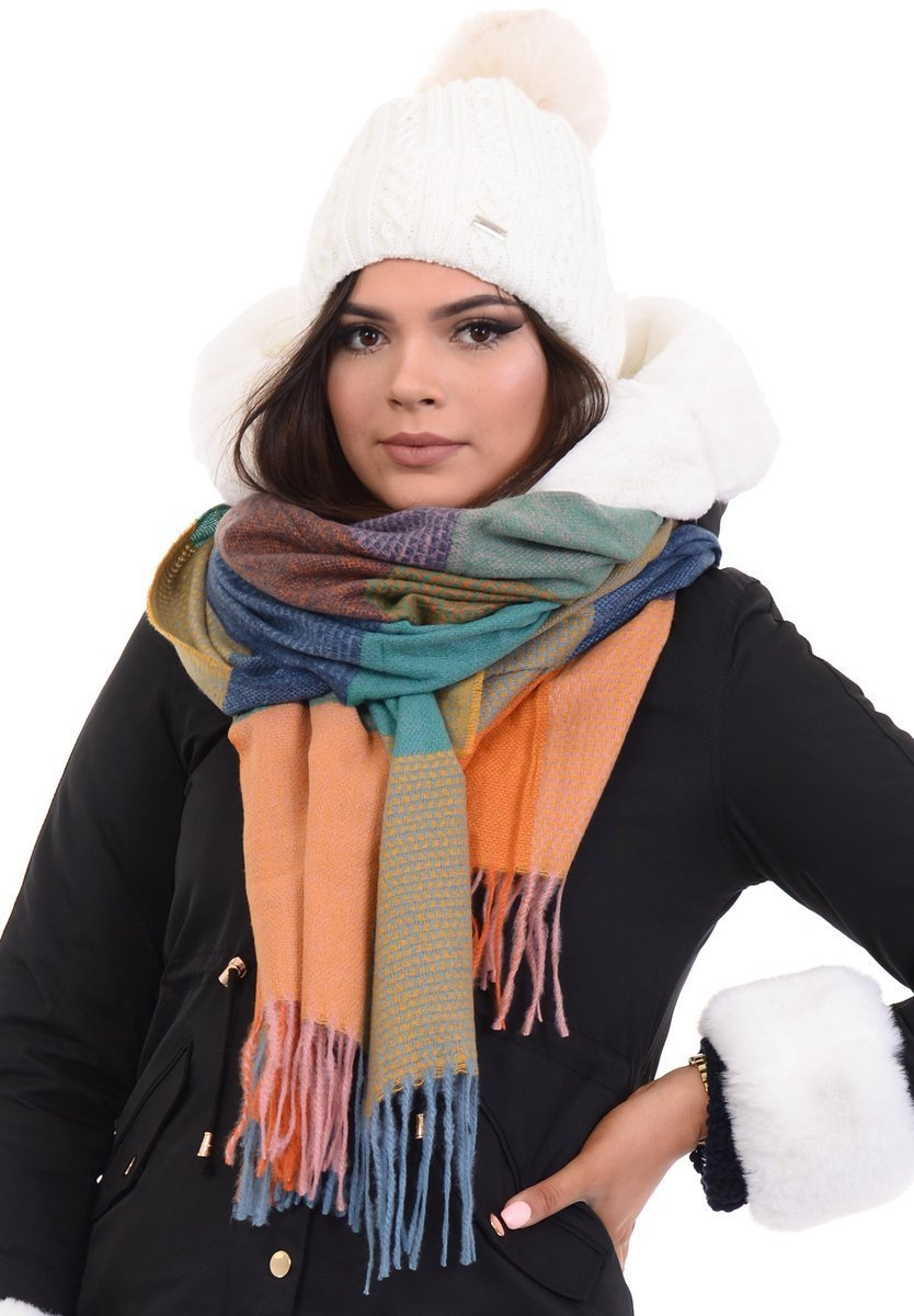 Damski duży szalik w kartę. Szalik w kolorze niebiesko- fioletowym. Szal sprawdzi się idealnie do wielu stylizacji na jesienne oraz zimowe dni. Materiał: 100% Wiskoza. Wymiary ok. 186 cm x 67cm.